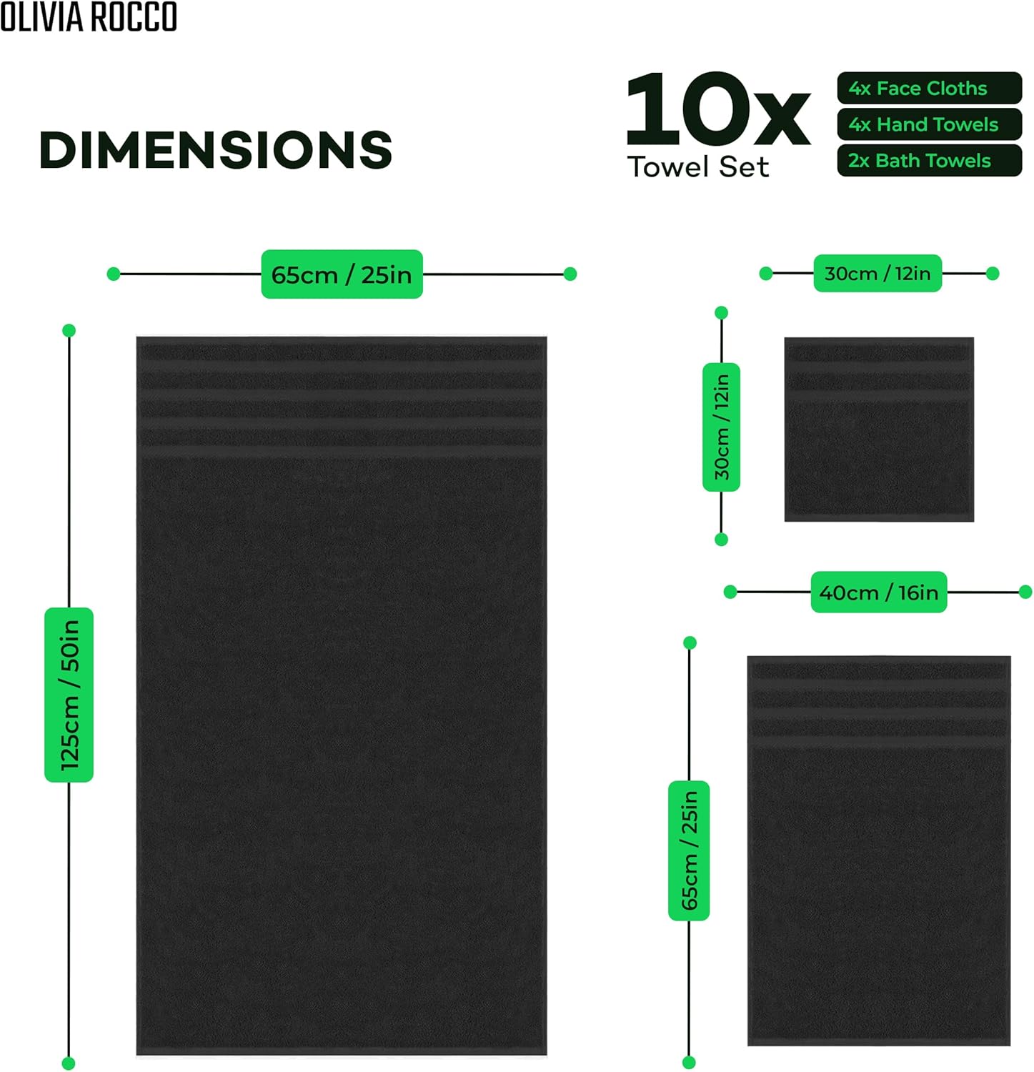 10 Piece Monaco Luxury Egyptian Cotton Towel Set 500 GSM with 4 Face Towels 4 Hand Towels 2 Bath Towels for Bathroom by OLIVIA ROCCO