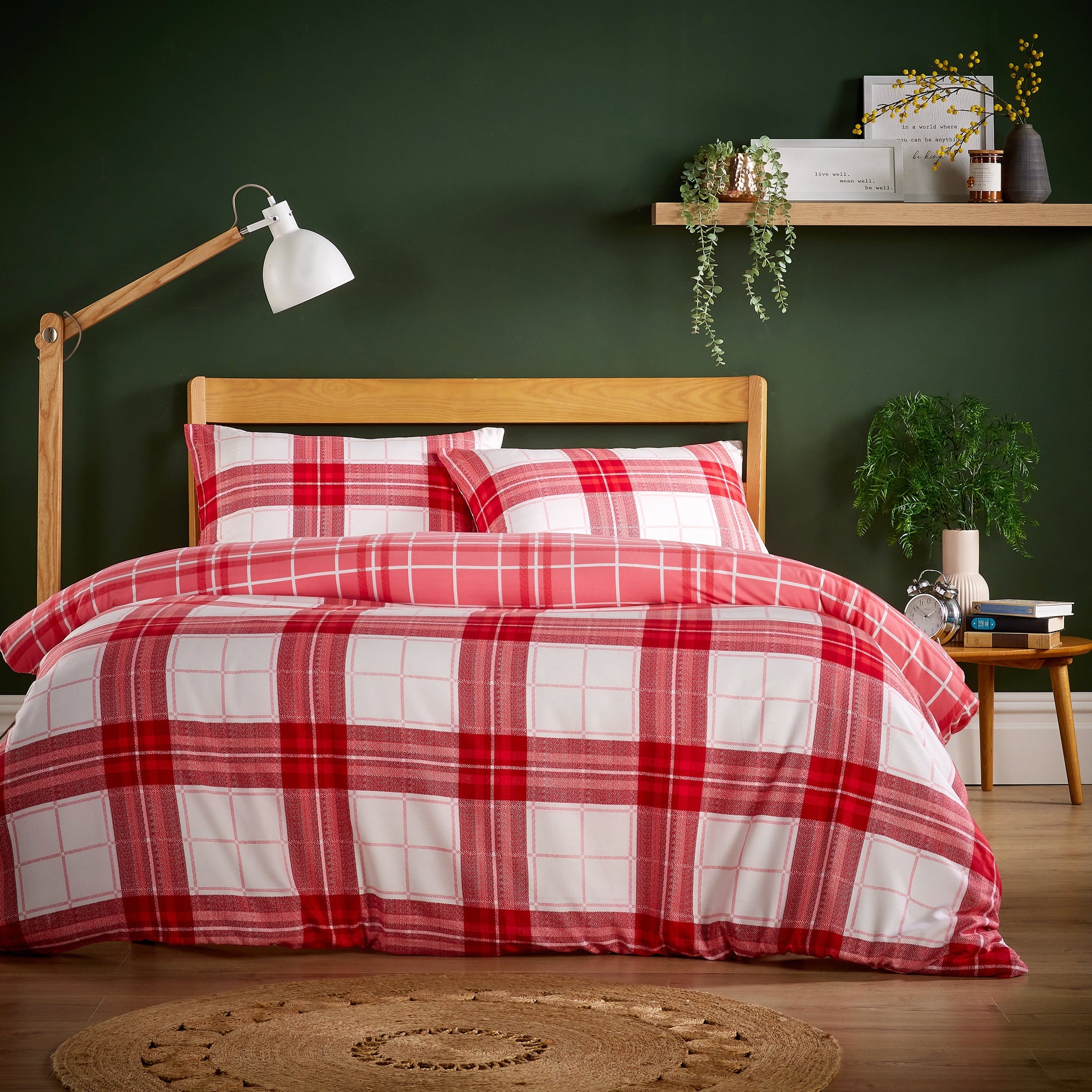 Alba Red Super Soft Flannel Duvet Cover Set with Pillowcases Warm & Cosy Quilt Bedding in Multiple Sizes Available by OLIVIA ROCCO