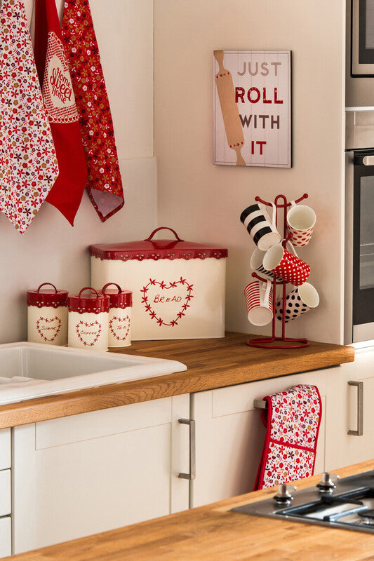 Refresh your beverage area with the Anglaise Tea, Coffee and Sugar Canister Set. This cream-and-red trio delivers coordinated storage with elegant detailing, keeping daily essentials organised and easy to reach. The soft cream bodies and classic red accents lend a gentle vintage feel that works beautifully in both traditional and modern kitchens.