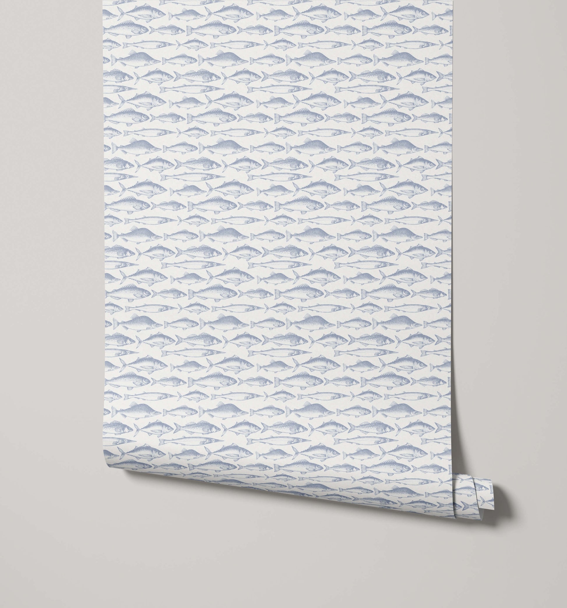 Bring the rhythm of the sea into your home with this characterful Fish Wallpaper. Rows of finely illustrated fish swim across the surface in seemingly endless schools, creating a lively, nautical backdrop that feels playful yet considered. The close, repeated motif adds a sense of movement and texture, as though the wall itself is gently in motion.
