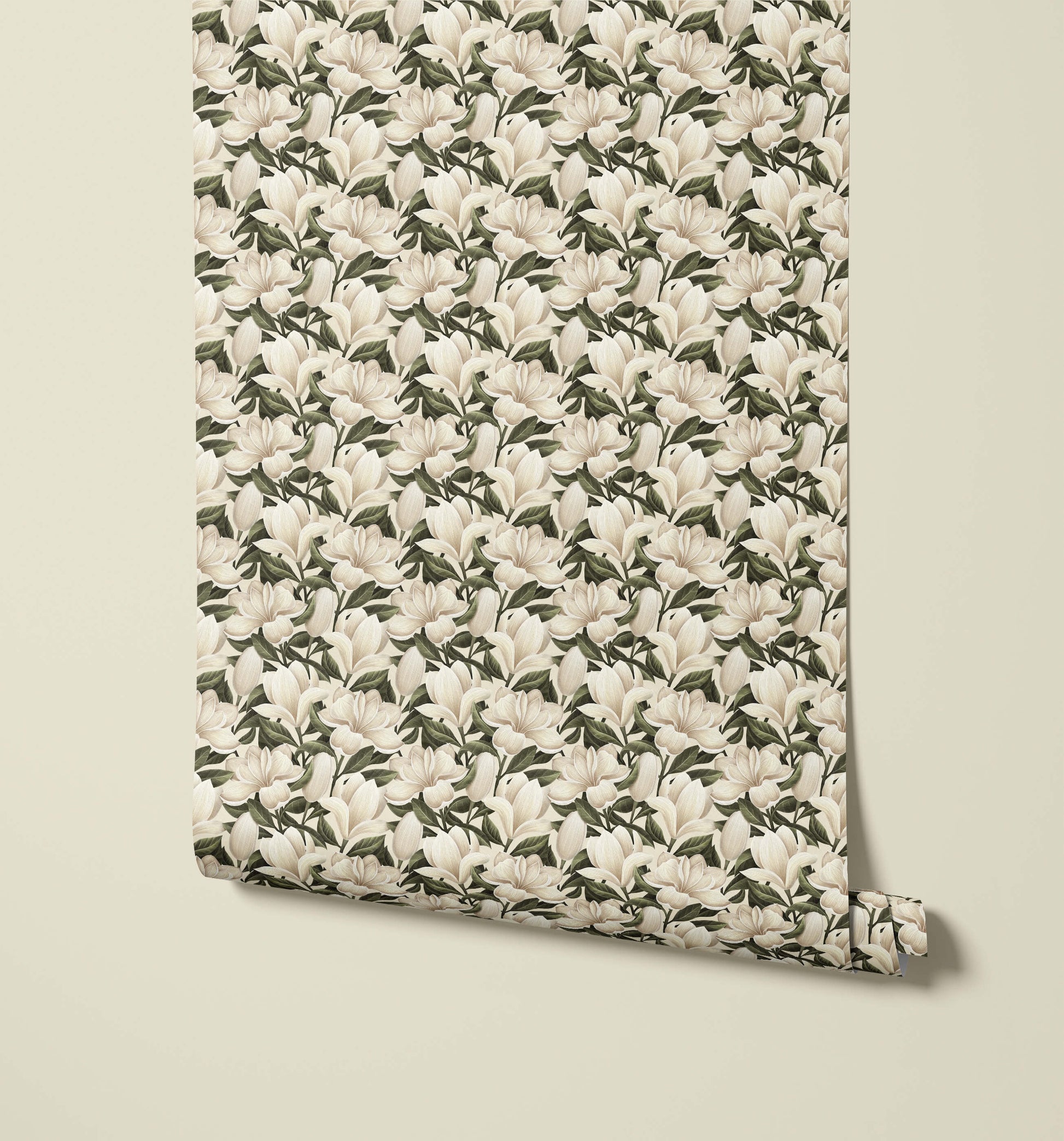 Wrap your walls in rich, botanical drama with this Magnolia Floral Wallpaper. Celebrating the full beauty of magnolia in bloom, it showcases large, creamy blossoms intertwined with deep, lush foliage, creating a design that feels both opulent and reassuringly classic. The tightly packed motif completely covers the surface, giving a fabric-like tapestry effect that instantly adds depth and presence to any room.