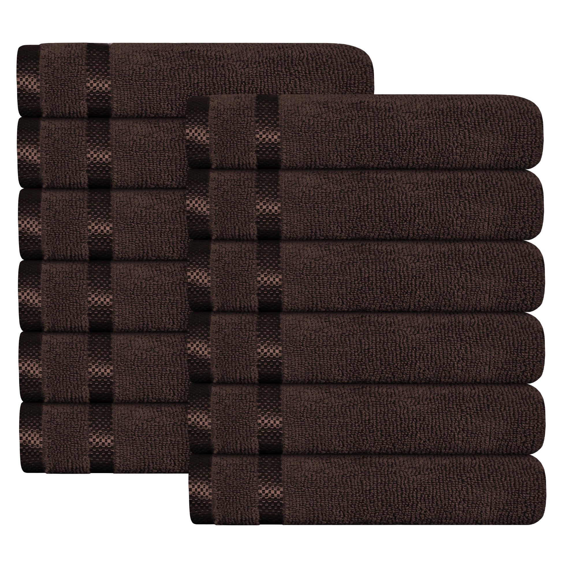 Belmont Viscose Stripe Brown Towels 100% Cotton Hotel Quality Super Absorbent 10 Piece Bale Set, 4 Hand Towel & 12 Face Cloths by OLIVIA ROCCO
