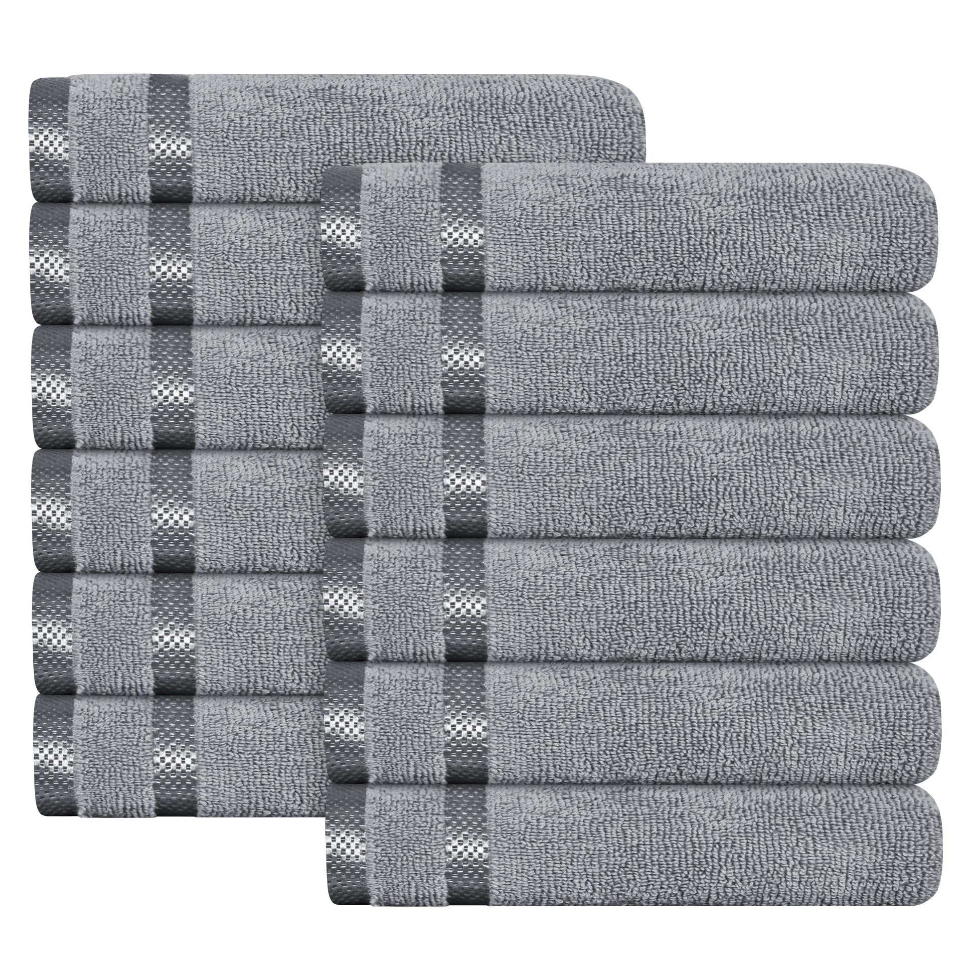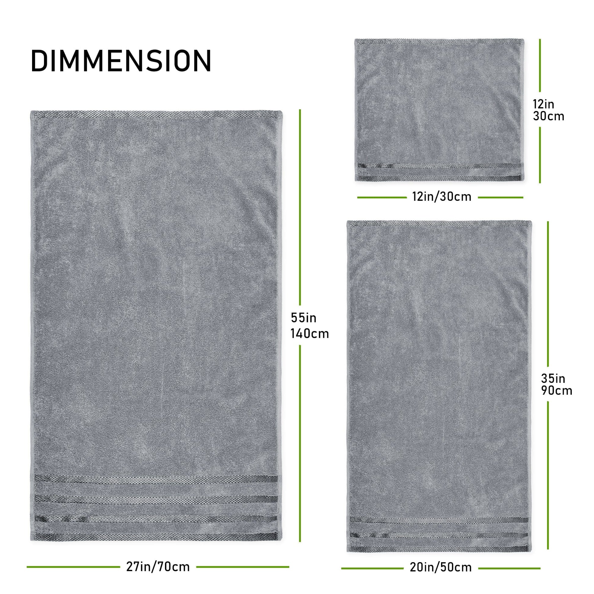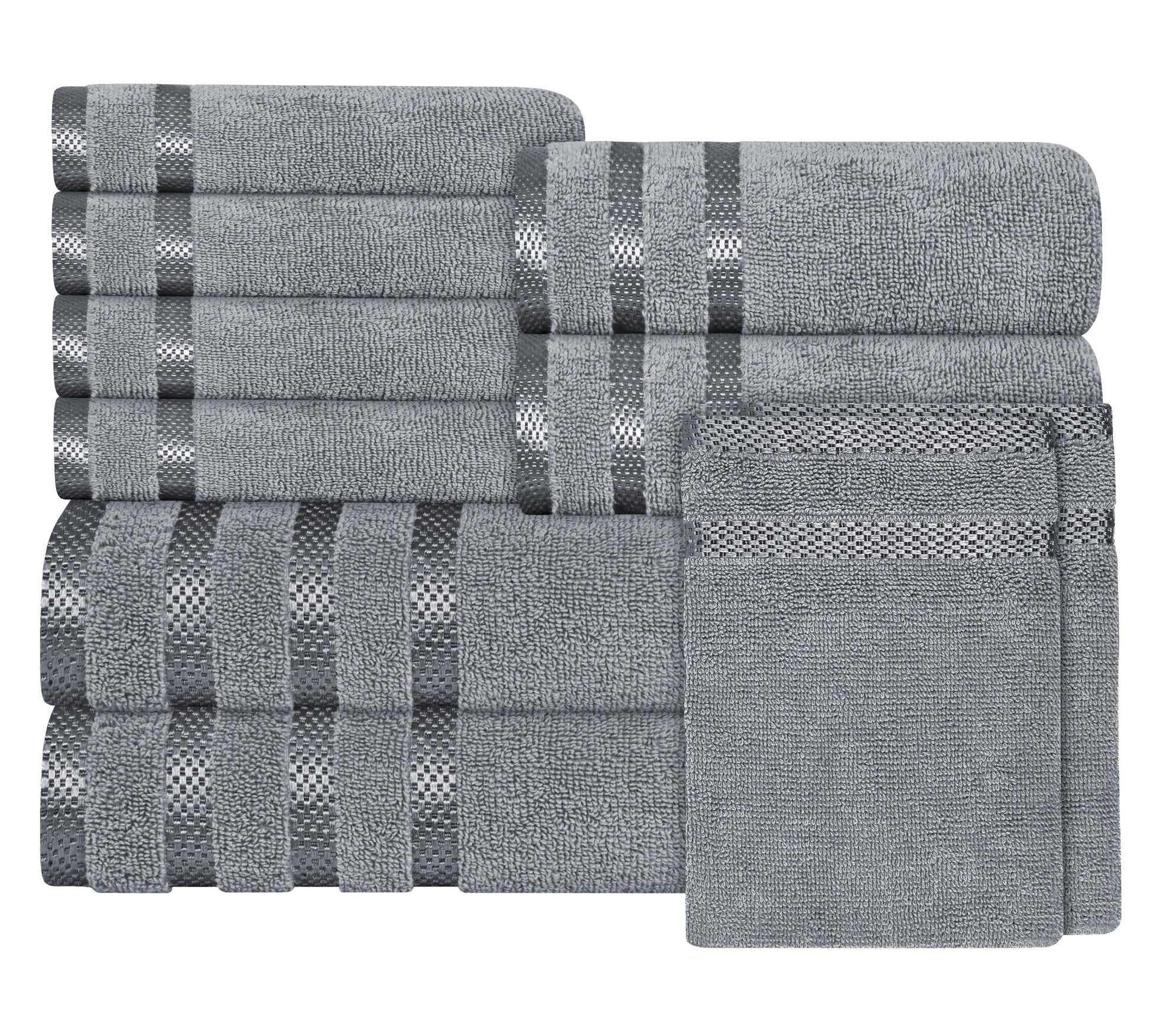 Belmont Viscose Stripe Silver Towels 100% Cotton Hotel Quality Super Absorbent 10 Piece Bale Set, 4 Hand Towel & 12 Face Cloths by OLIVIA ROCCO