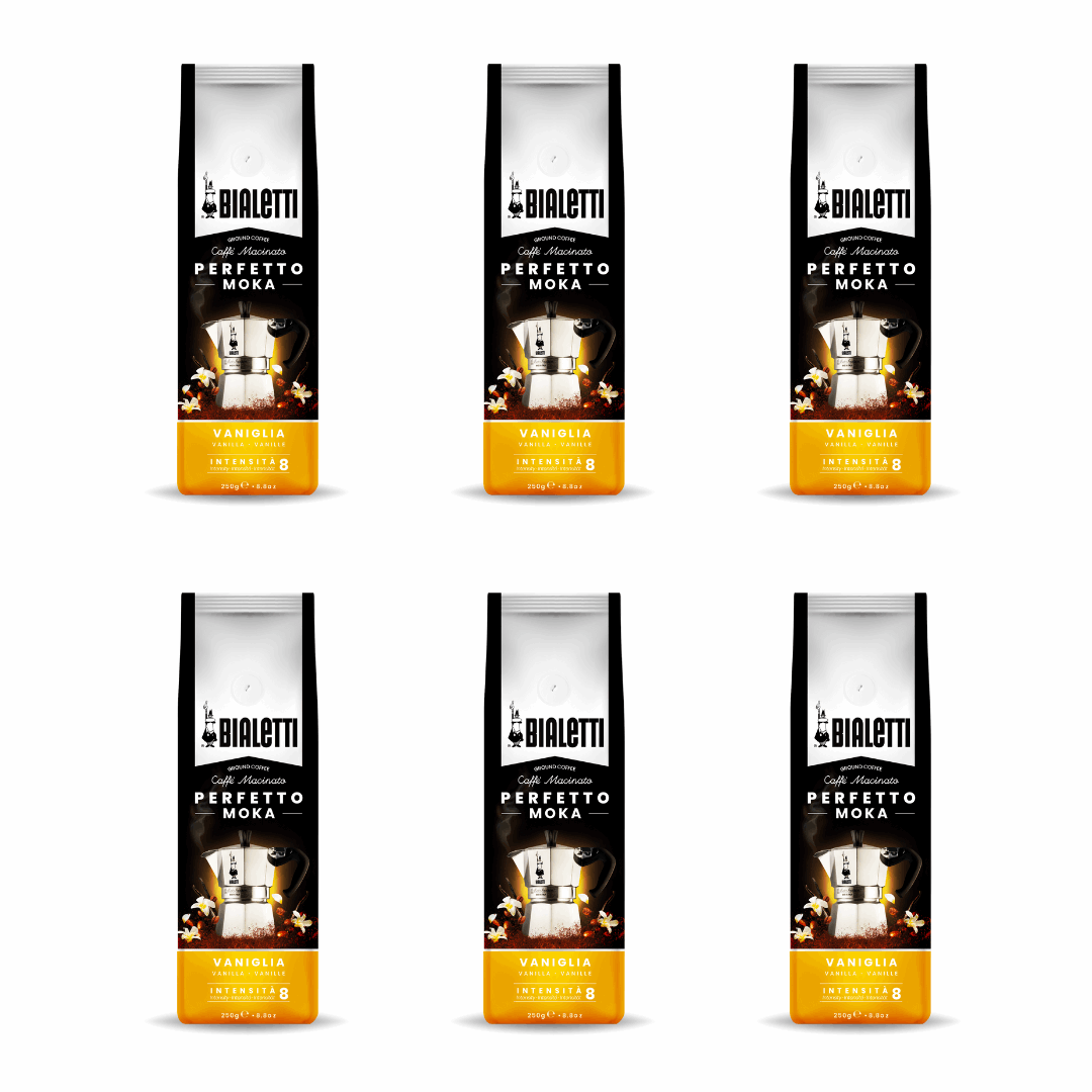 From balanced, everyday favourites to bold, indulgent flavoured options, Perfetto Moka lets you tailor your coffee ritual to your taste. Whether you prefer classic Arabica–Robusta blends, smooth 100% Arabica or dessert-inspired flavours, every bag is designed to work perfectly with your Bialetti Moka pot and other stovetop brewers.