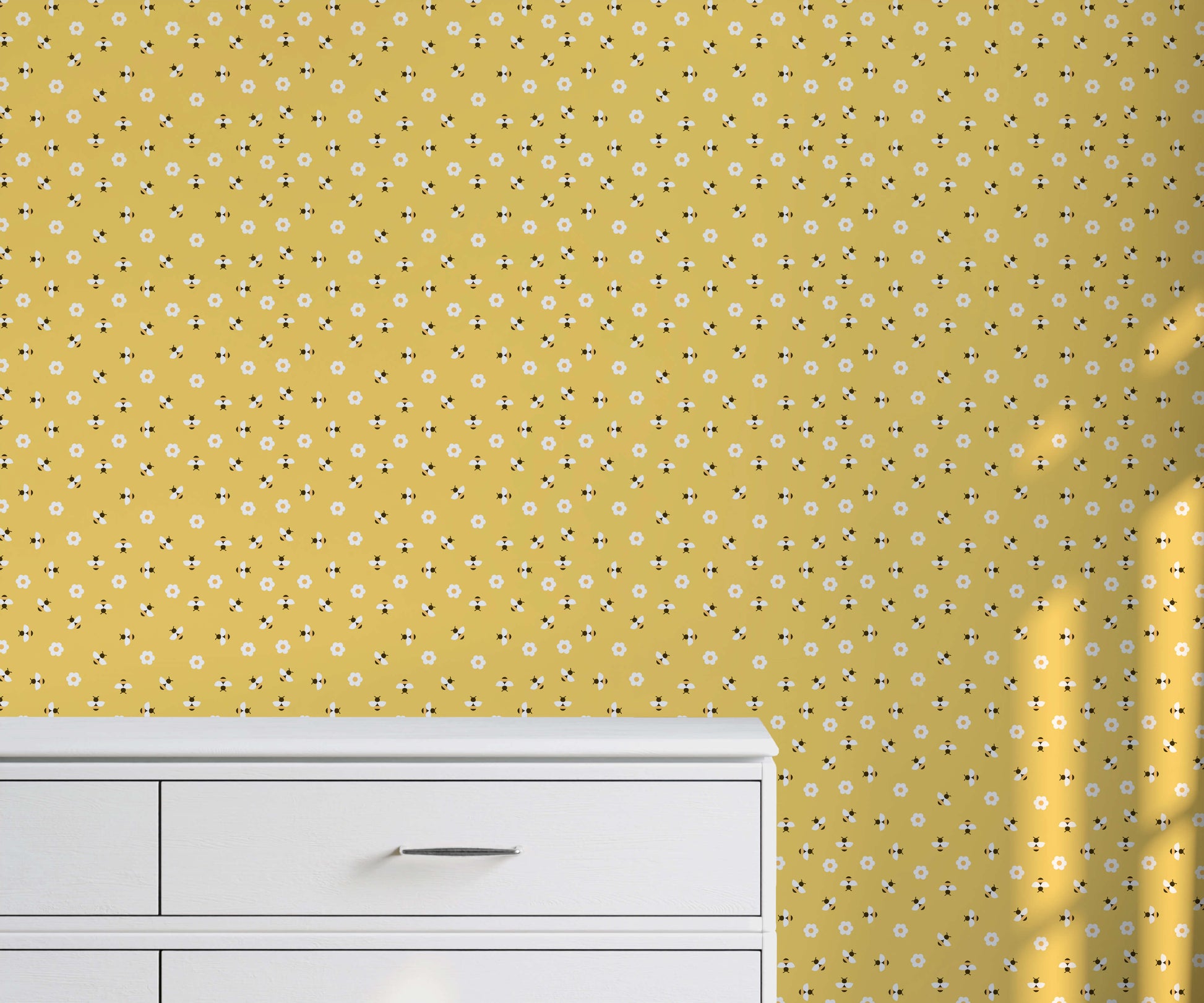Elevate your space with the charm of our cute bee wallpaper. This features a modern graphic design of a delightful bee and flower motif in a captivating repeat pattern. This contemporary take on nature-inspired decor brings a playful and stylish element to your walls. The bee and flower motif, with its sleek and modern aesthetic, adds a touch of whimsy to any room. The result is a visually captivating and charming atmosphere that enhances any space in your home.
