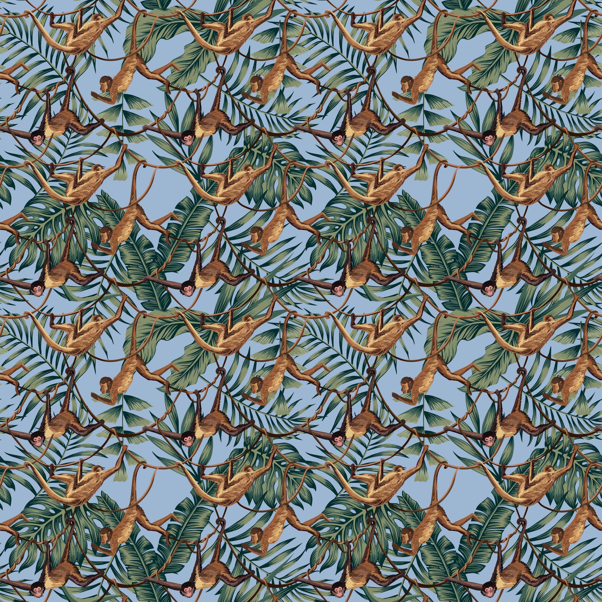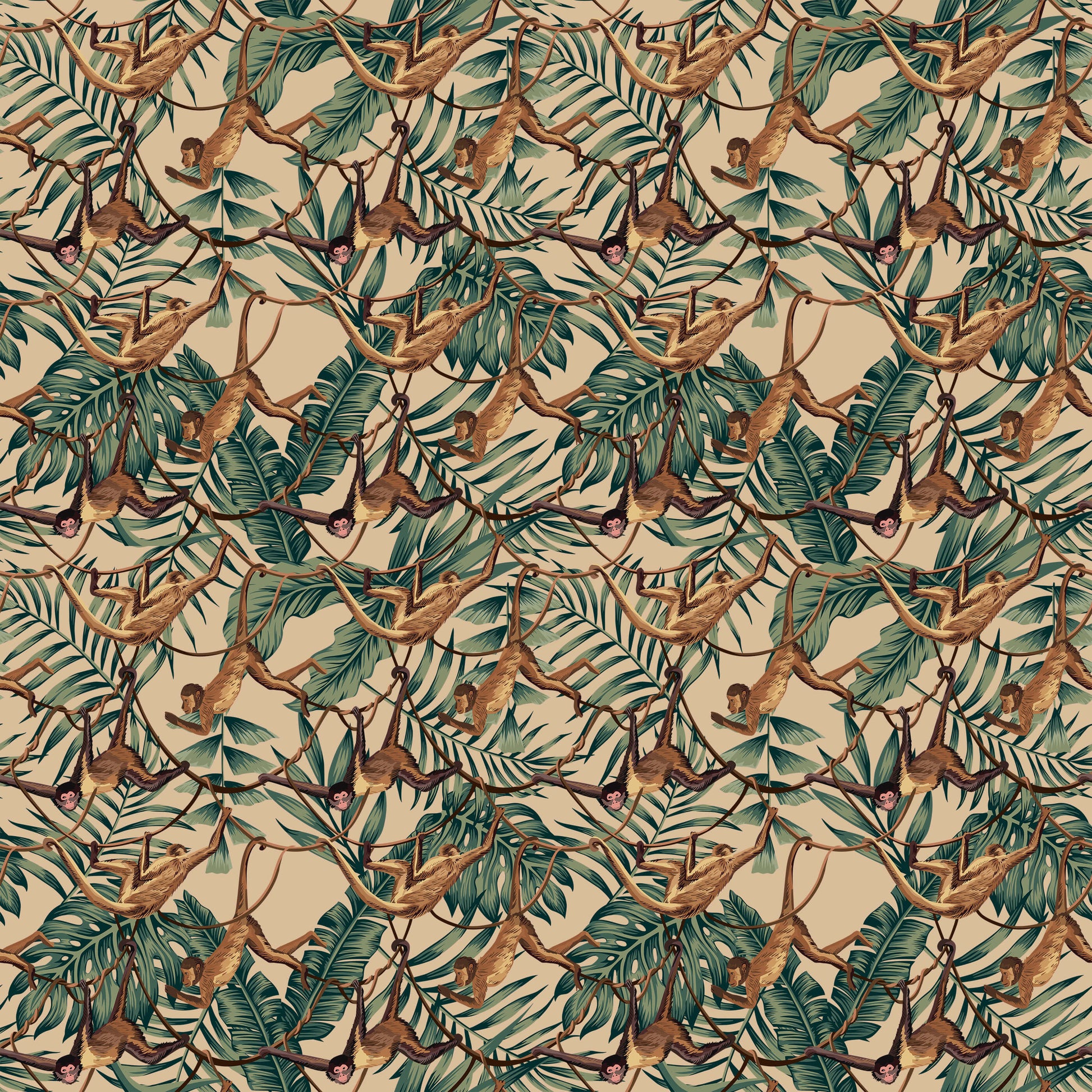The design features illustrated monkeys swinging amongst vines and leaves, and comes in a variety of colours, including neutrals and bolds.