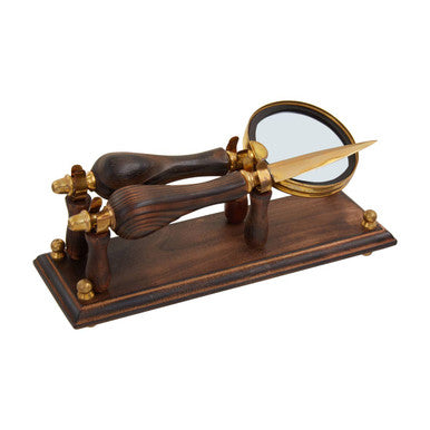 The round brass magnifier and matching letter opener are expertly crafted and connected to ergonomically designed handles with a traditional ferrule. This ensures long-lasting durability and comfortable use.
