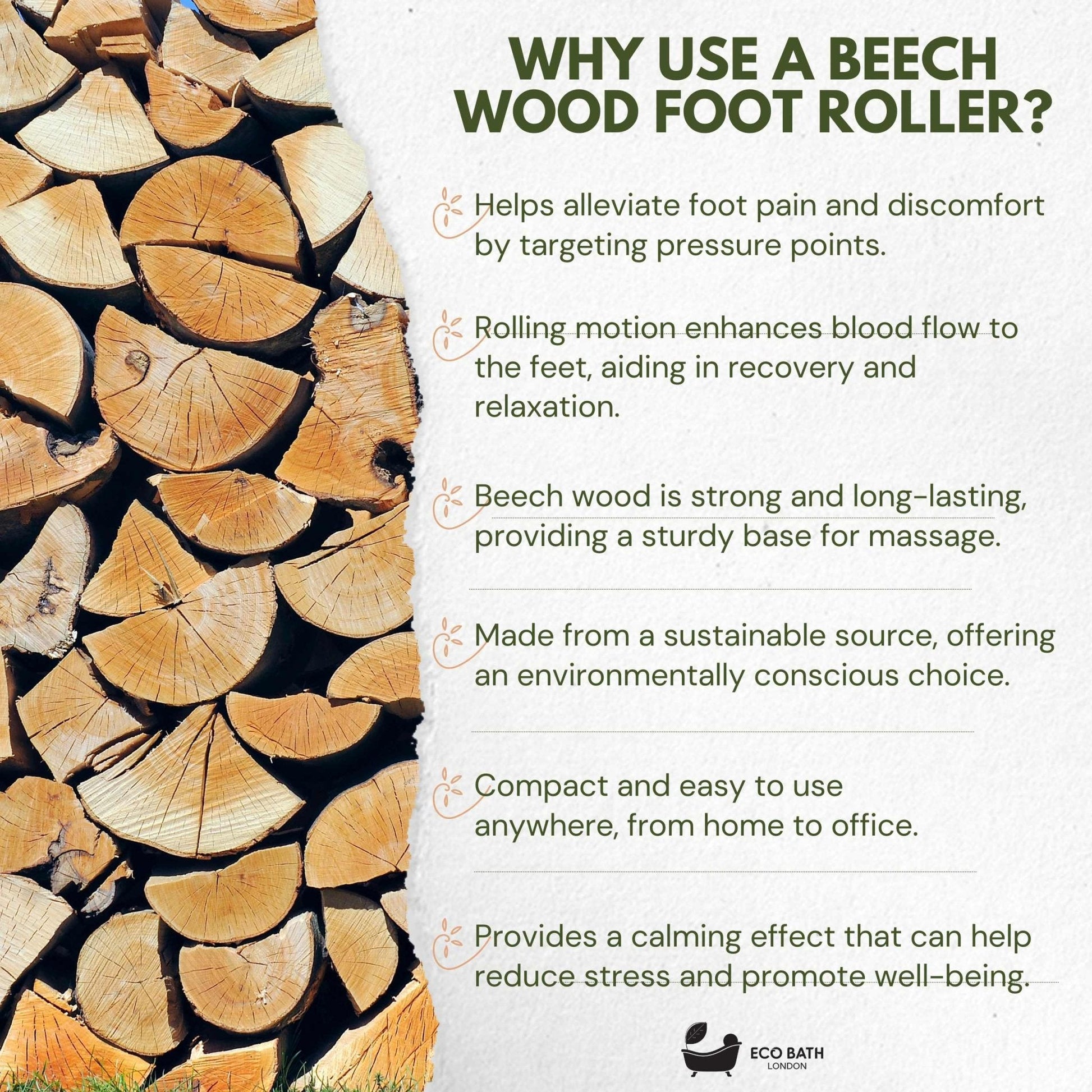 Eco Bath London Foot Roller - Wooden Foot Roller Massager for Pain Relief and Improved Circulation
