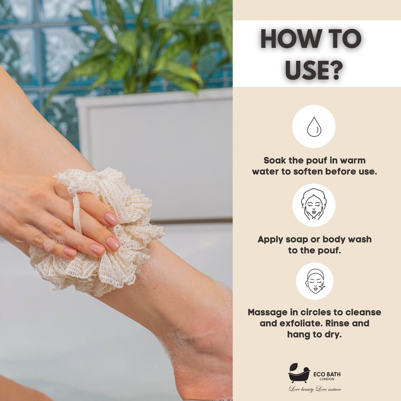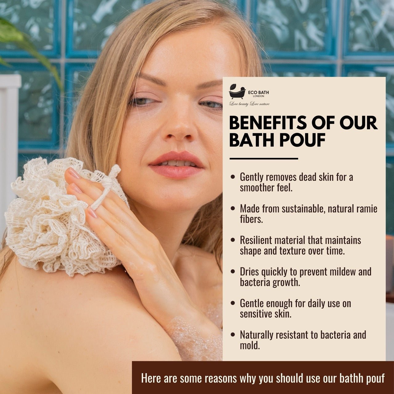 - GENTLE EXFOLIATION: Made from natural ramie fibres, the Eco Bath Ramie Bath Puff gently yet effectively exfoliates, removing dead skin cells and impurities for smoother skin.
