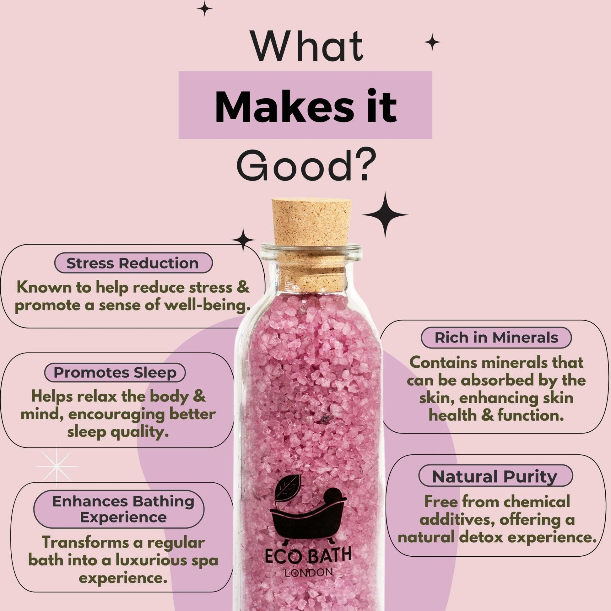 Eco Bath London is dedicated to offering high-quality, sustainably sourced, eco-friendly products. Our Relaxing Dead Sea Salt comes in a compact 300g package, making it easy to store and perfect for multiple uses. To enjoy the benefits, dissolve the salts in warm water, then immerse yourself in a soothing, refreshing bath.