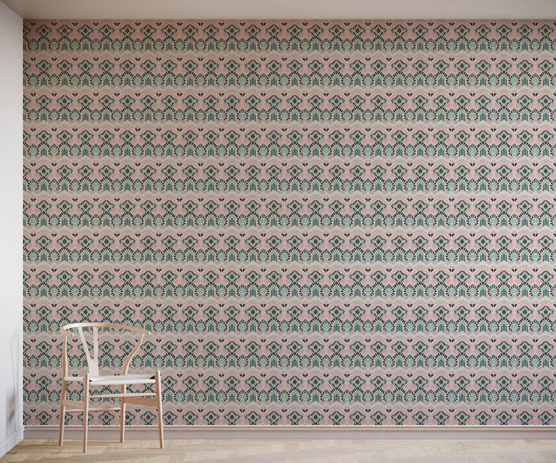 This Aztec tribal wallpaper is a modern adaptation of a more traditional theme. Aztec design is characterised by bold geometric shapes, intricate patterns, and the use of vibrant colors. This design comes in several bold colours, as well as black and white.