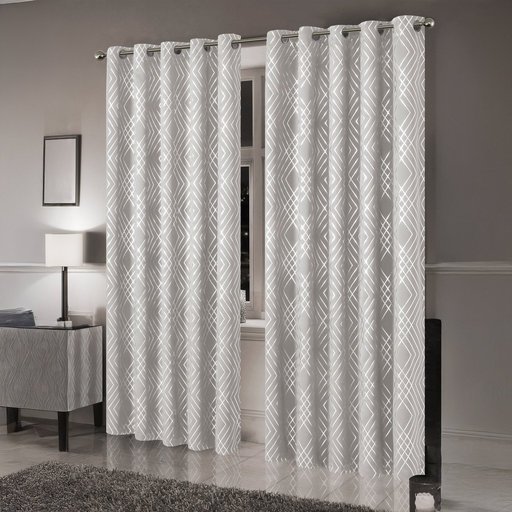 Offered in an elegant natural tone with a shimmering geometric design, these curtains complement a wide variety of interior styles—from modern minimalist to luxury chic. The subtle sparkle adds interest and depth without overwhelming your existing décor.
