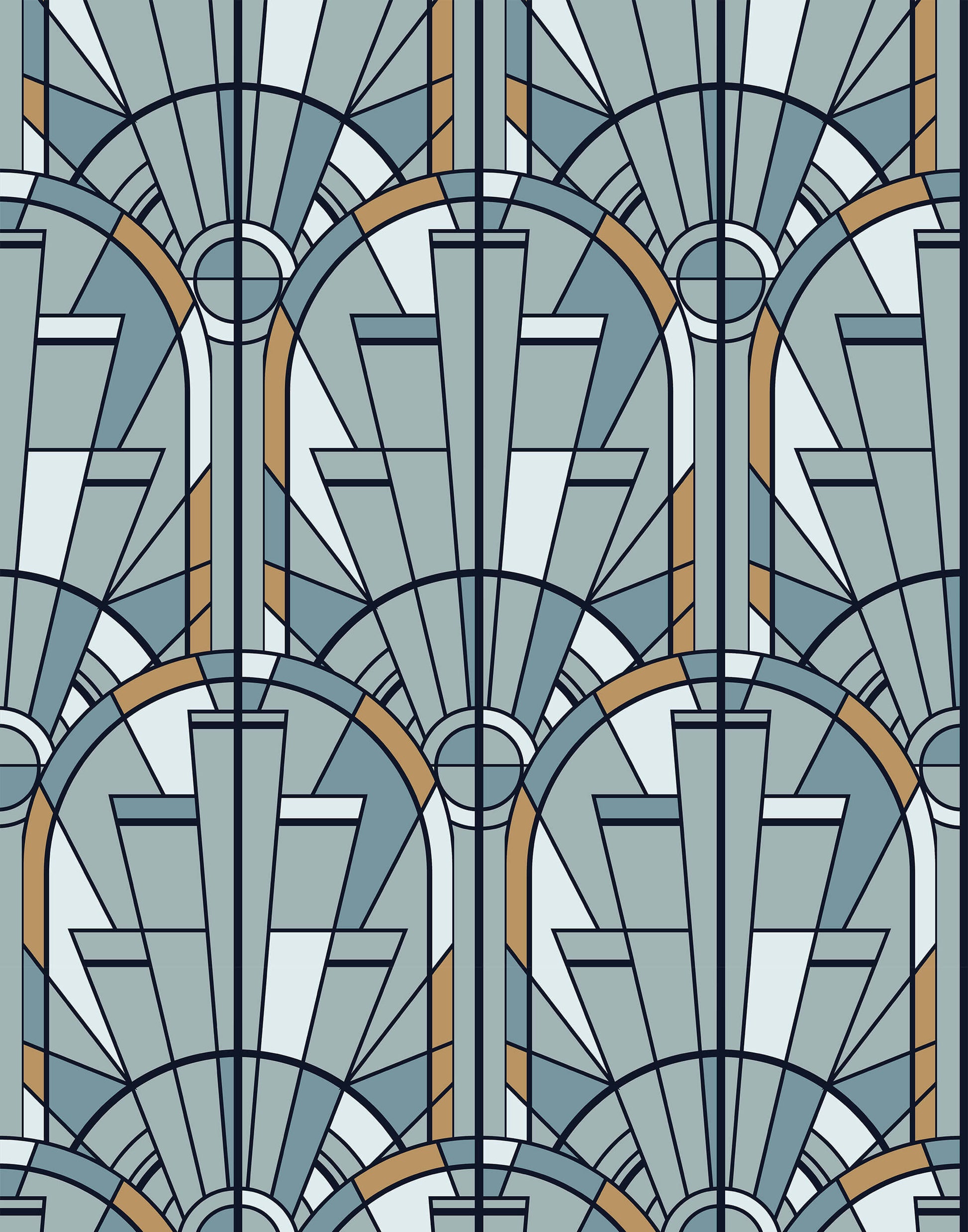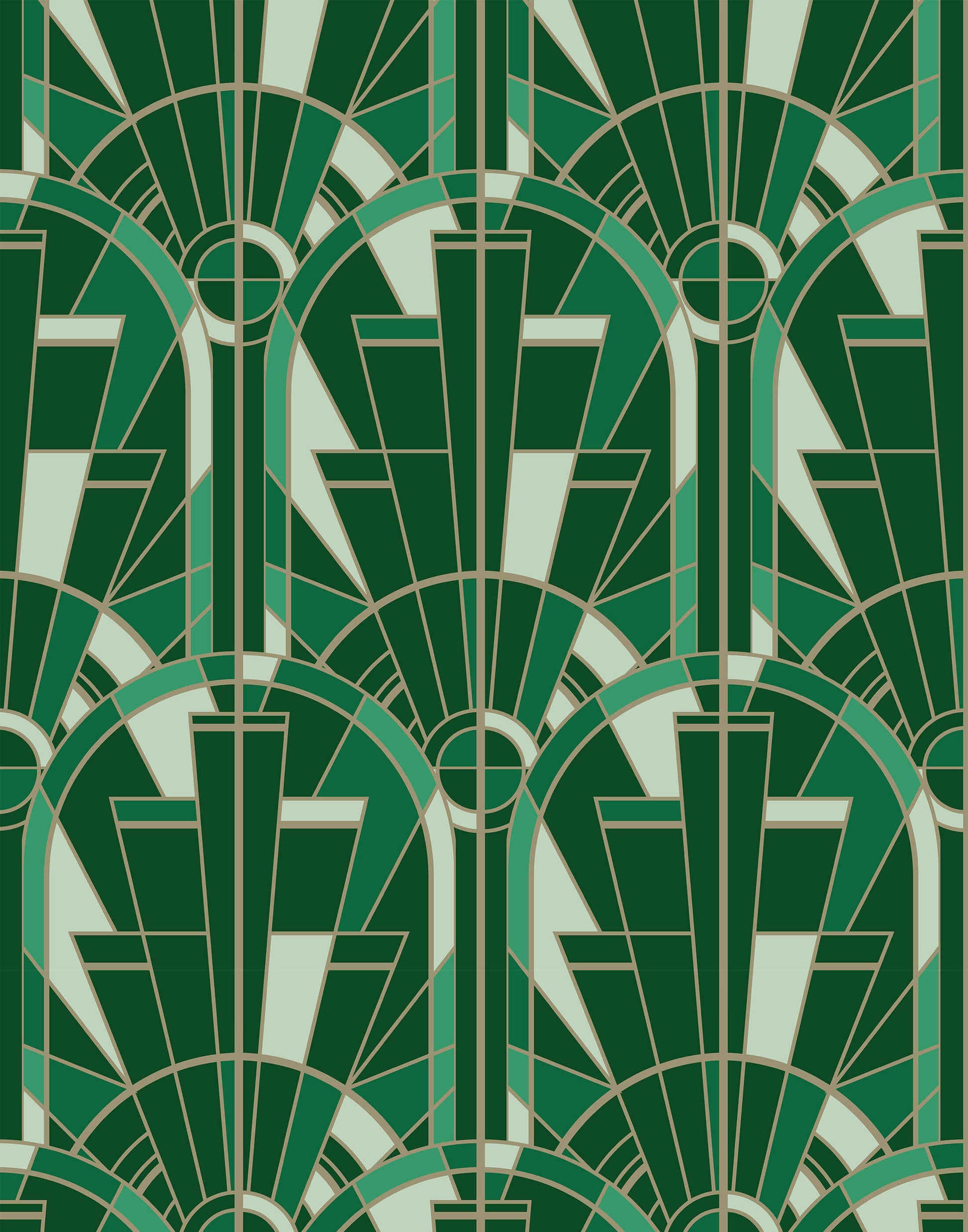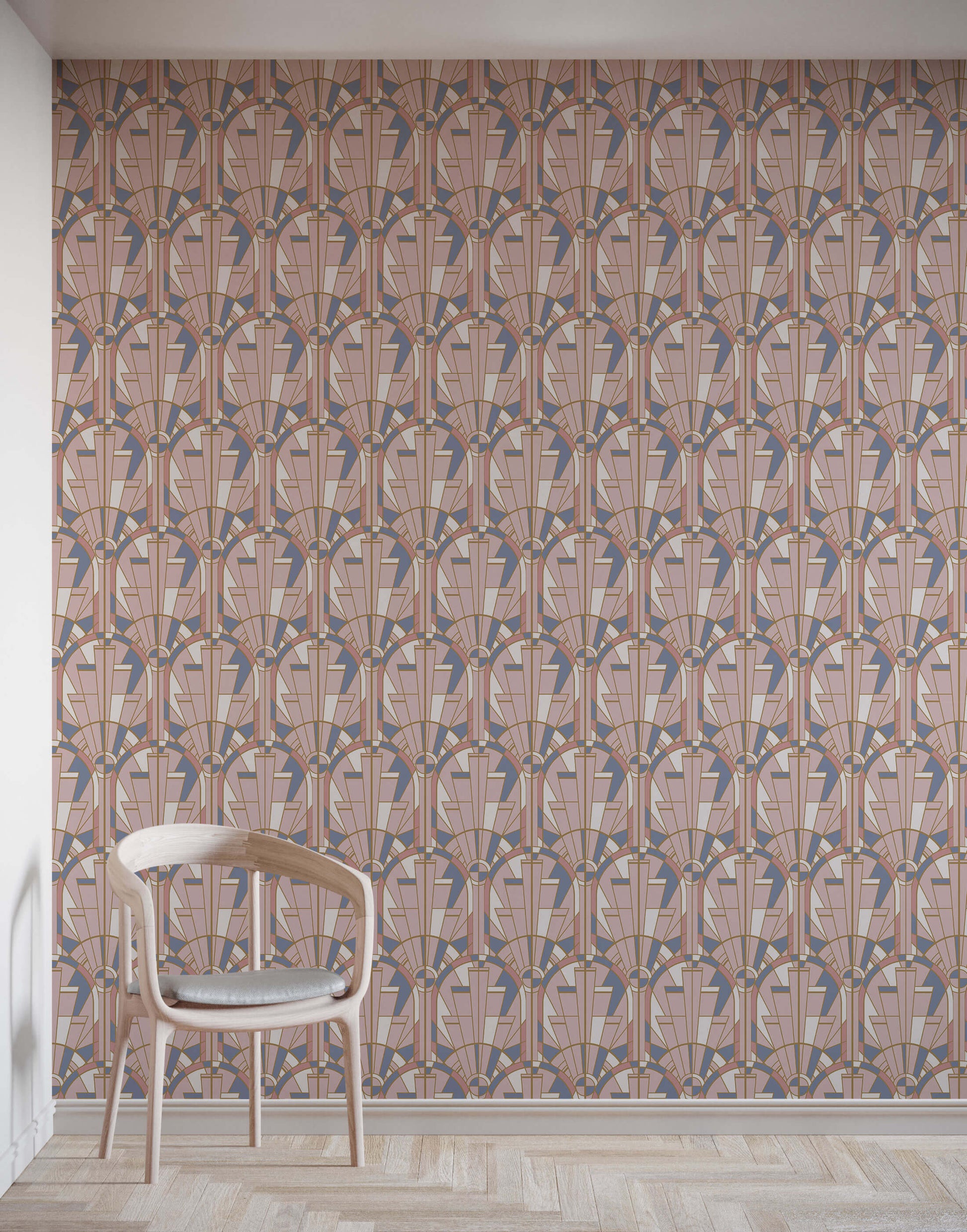 An intricately detailed, art deco-inspired wallpaper that won't fade into the background. It is a design that oozes the decadence and innovation for which the 1920s were so well known. Available in a variety of bright and muted tones, there is a style to fit most spaces.