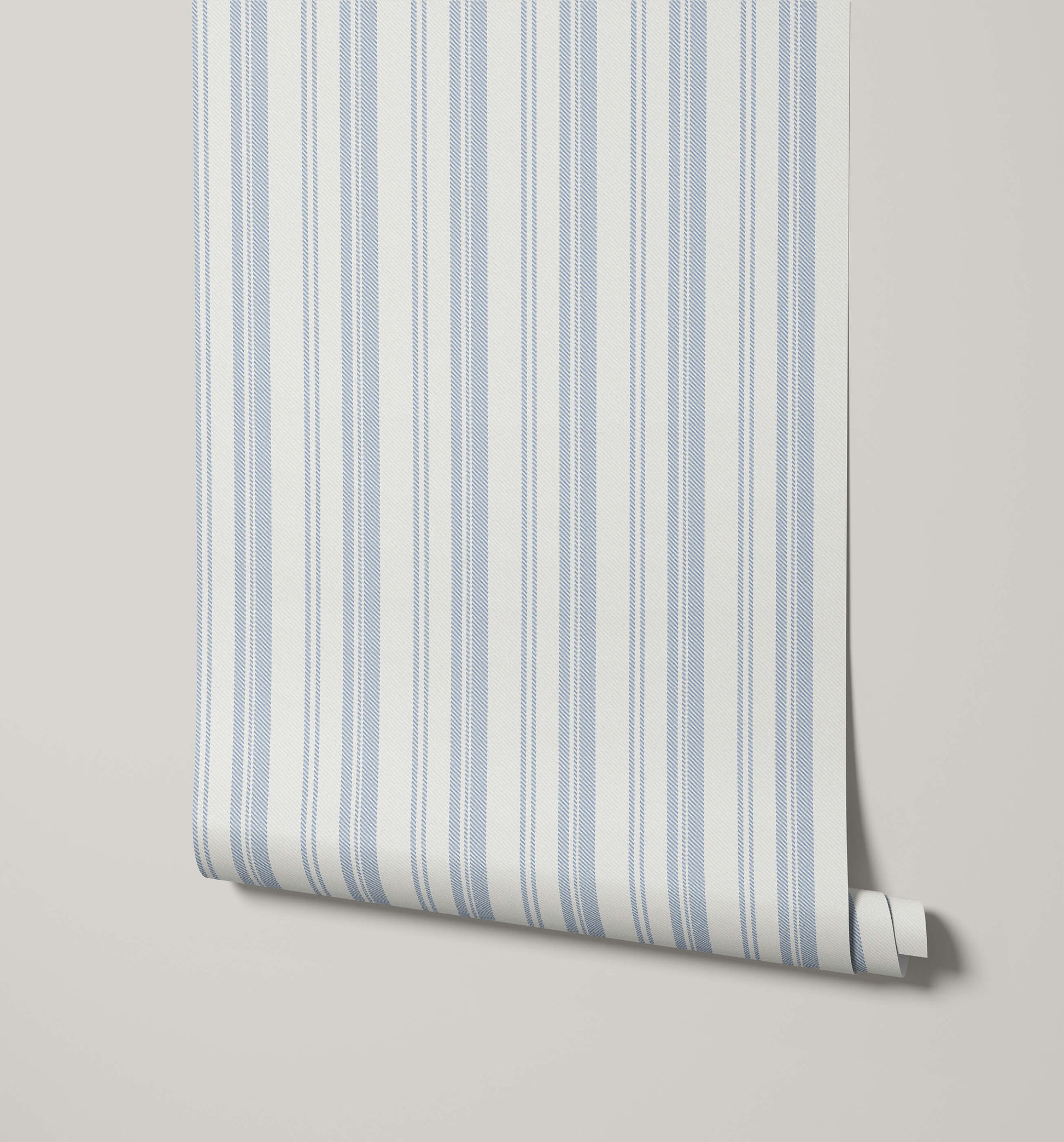 What sets this ticking stripe apart is its delicate, textural finish. Each stripe is rendered with a subtle crosshatch or woven effect, echoing the character of homespun cloth. The result is a pattern that feels soft and lived-in, adding depth and charm while maintaining a clean, orderly look.