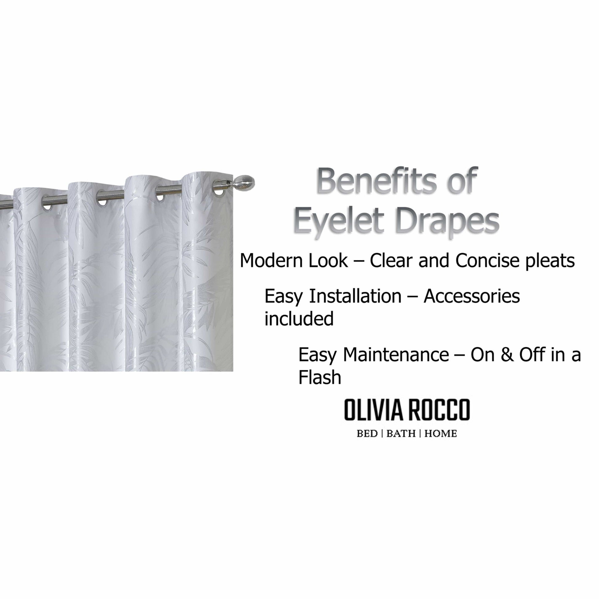 Leaf White Sparkle Blackout Curtains Super Soft Thermal Insulated Eyelet Drapes for Living Room & Bedroom 2 Panels by OLIVIA ROCCO