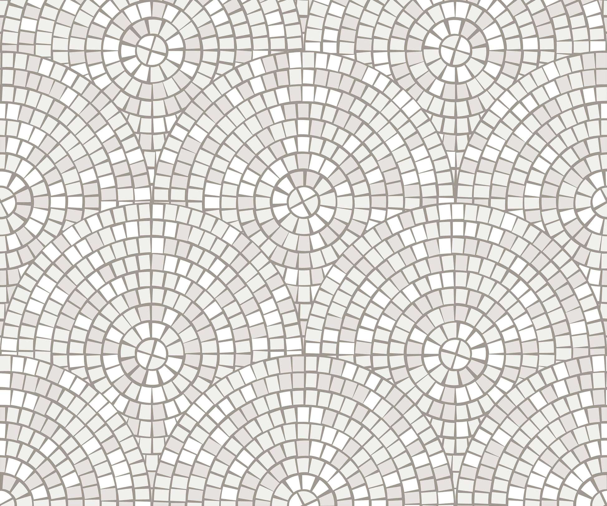 This mosaic tile wallpaper pattern contains overlapping circular forms. It comes in a variety of cool, muted tones to help balance the busy pattern, making it a great option for both minimalist and maximalist styles.