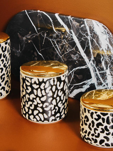 The glossy lid features a reflective gold finish with a silicone seal that closes with a confident push. The monochrome body channels the signature London Leo attitude for a boutique-inspired display, giving you the perfect balance of visual drama and practical organisation.