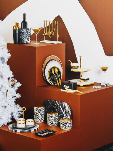 Elevate your countertop with the London Leo Medium Canister, a striking storage accent in black, white and gold. This medium canister keeps everyday essentials neatly sealed while adding a fashion-forward statement to your space. It's an easy way to build a coordinated look across your kitchen and living areas.