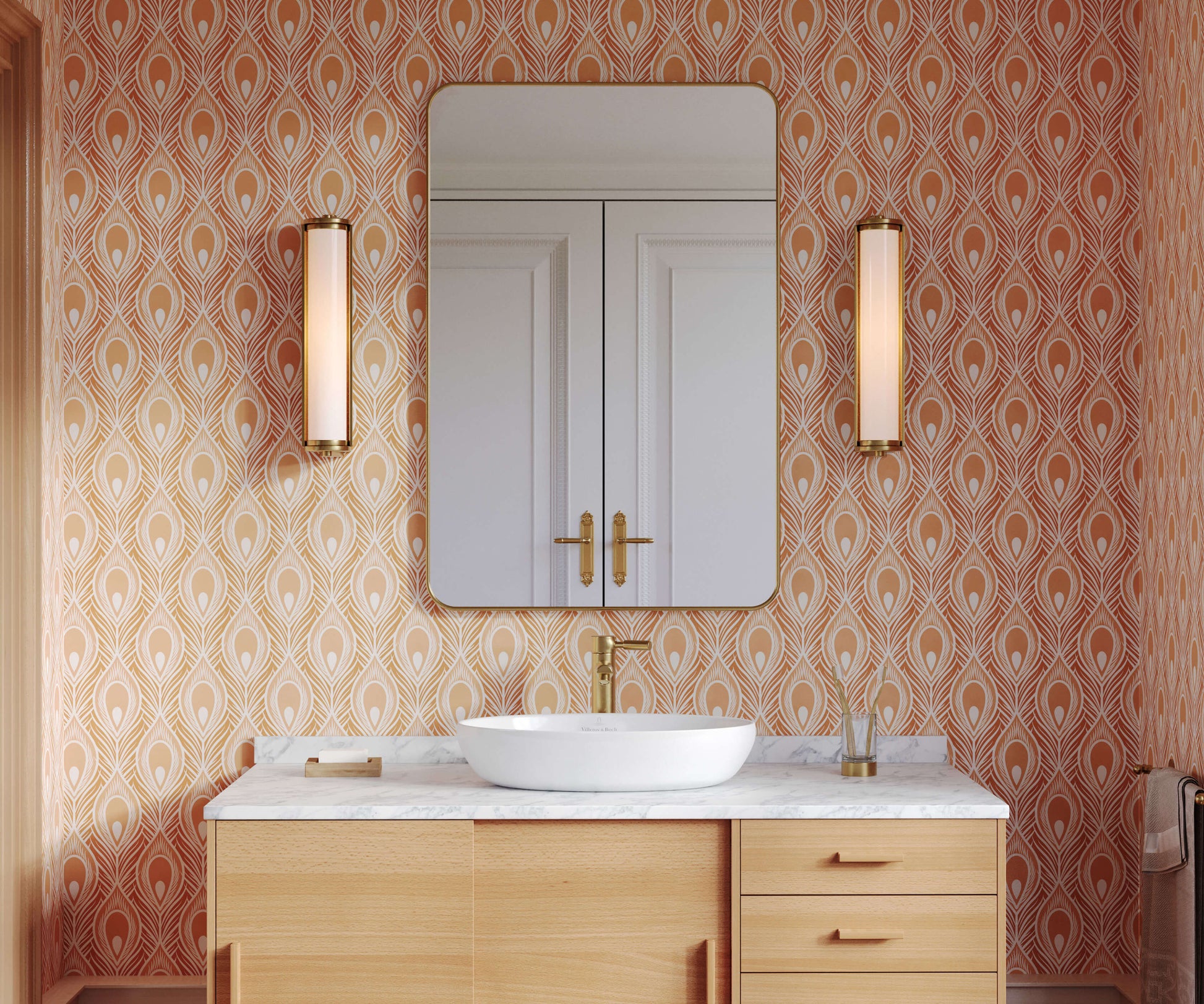 This intricate peacock-feather wallpaper can add a touch of glamour and sophistication to any space. Often known for their bright, vibrant colours and delicate patterns, peacock feathers are used as a symbol of beauty and elegance. Using bold lines to highlight the unique pattern of these bird feathers, this design arranges them in a satisfying, pleasing-to-the-eye pattern. With various colour options, including grey and blue, this design is flexible enough to be used in almost any room. It can be hung on a single standout feature wall or on multiple walls in a more minimalist setting..