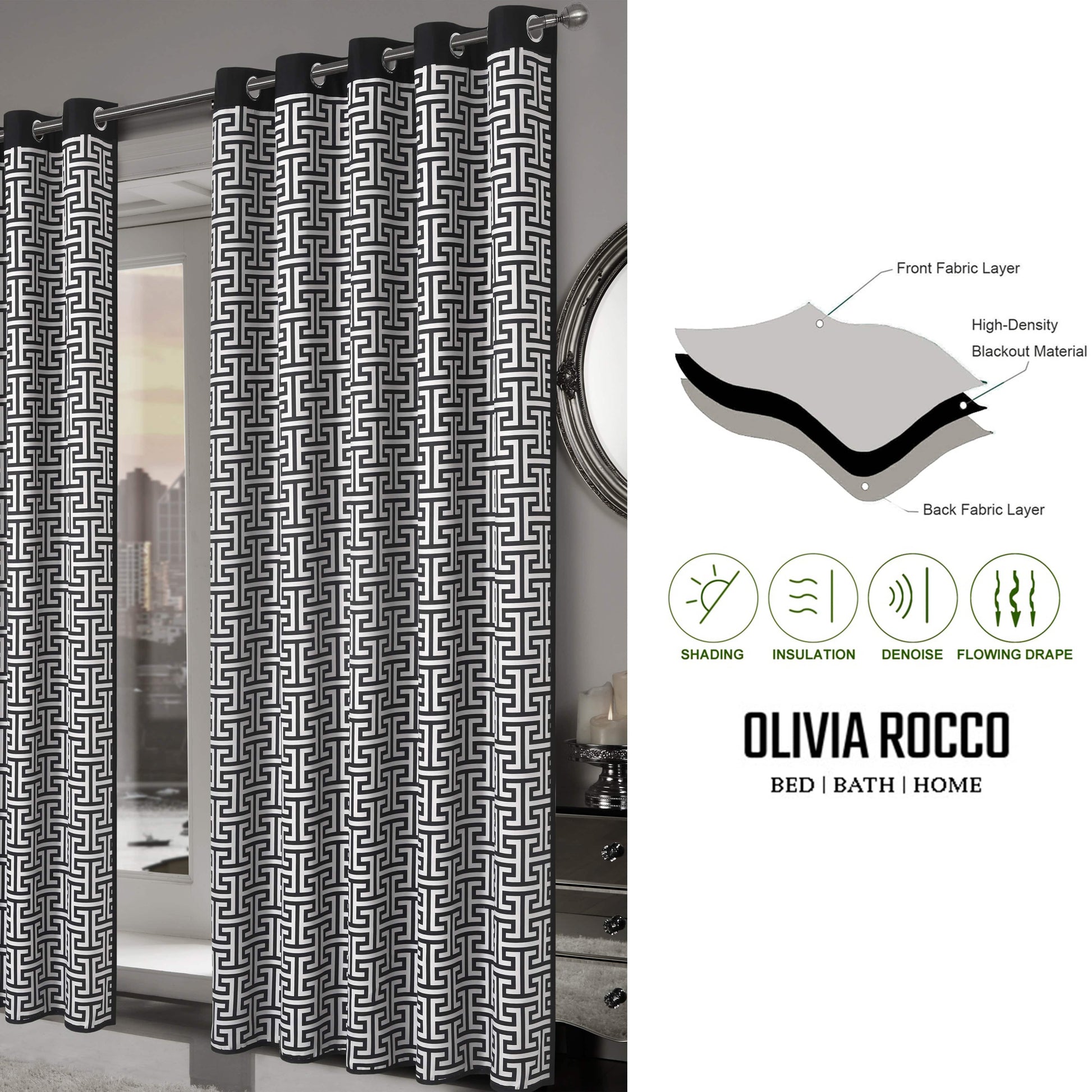 Milano Geometric Blackout Curtains Thermal Insulated Eyelet Pair Light-Blocking Window Drapes for Stylish Home Decor by OLIVIA ROCCO
