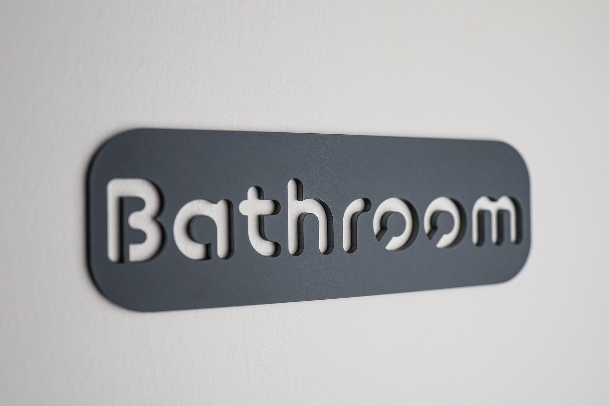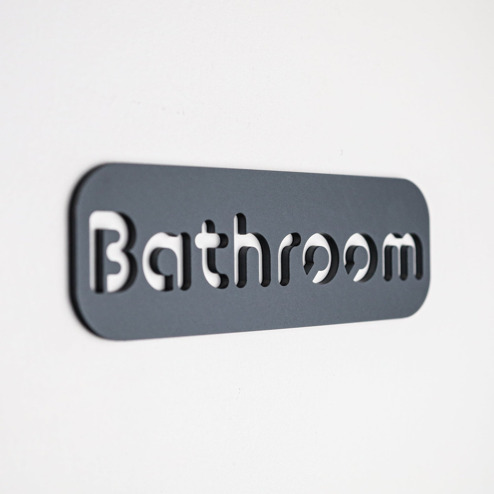 Bring a clean, contemporary look to your washroom with this sleek "Bathroom" wall sign in grey stone‑texture acrylic. With its minimalist styling and precise cut‑out lettering, it's an easy way to add a polished, modern touch to doors or walls in both homes and commercial spaces.