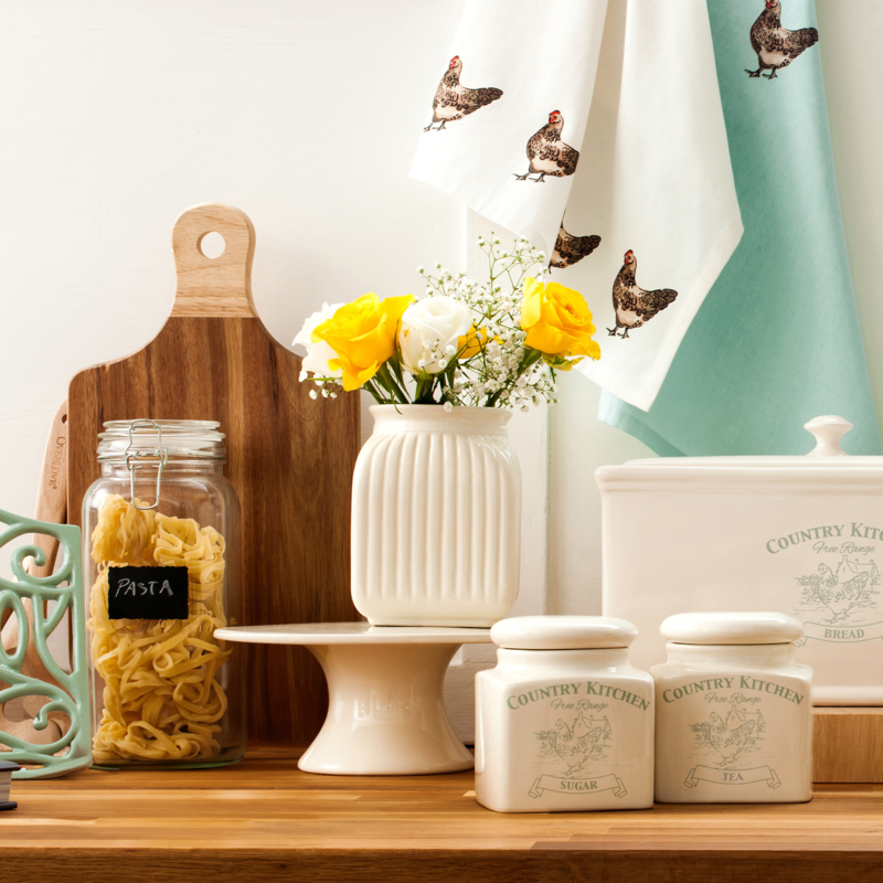 The Mrs Henderson Medium Canister delivers the same homely charm in a versatile mid-size format. This cream medium canister is ideal when you want a balanced footprint that still holds a generous supply. It slips into narrow shelves and looks delightful grouped with its companions.