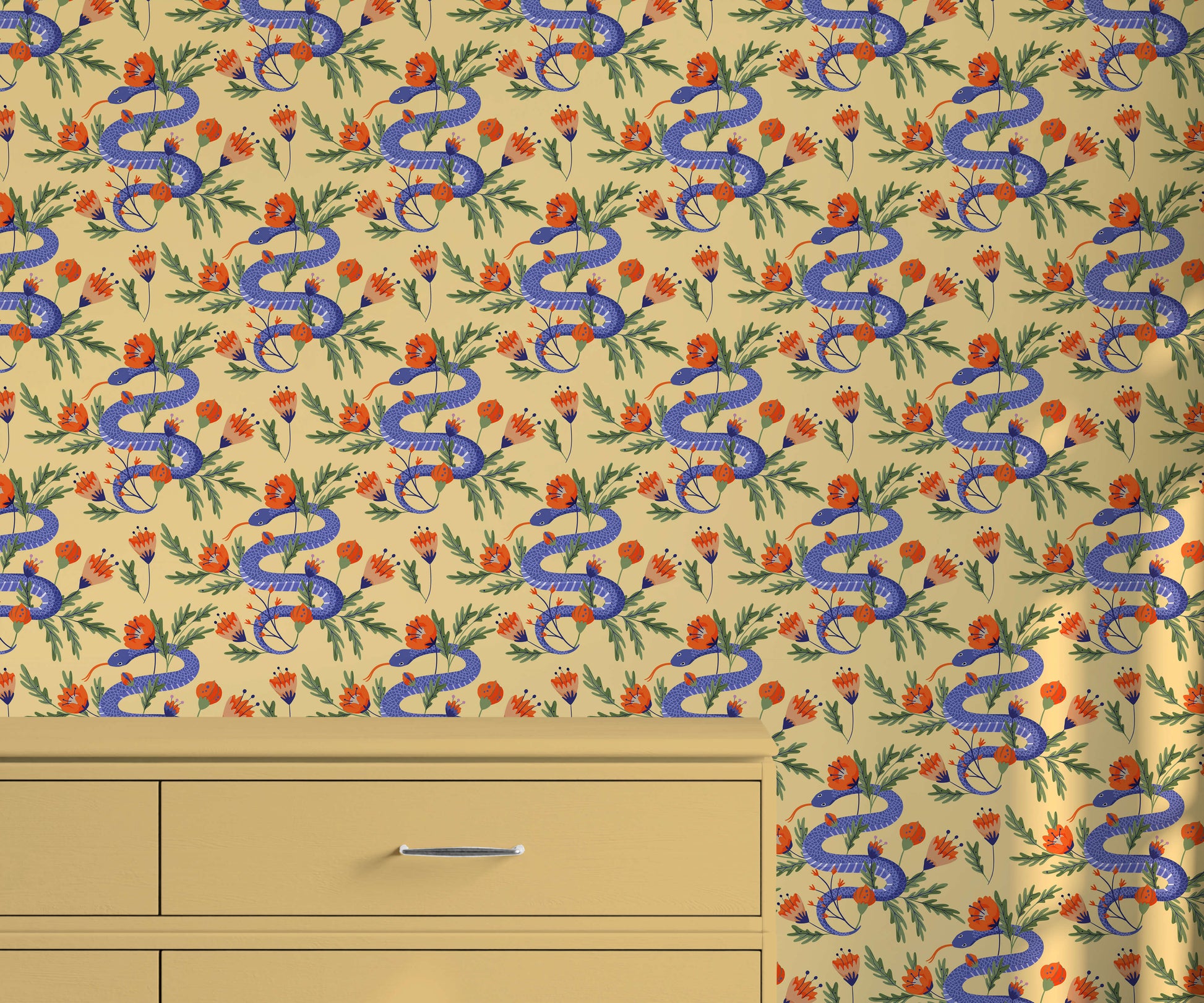 If you're looking to add something bold and unique to your walls, then our colourful snake wallpaper could be the perfect fit. The snakes, designed in a modern graphic style, take a typical floral design and add an interesting twist to the theme. The pattern comes in a variety of striking colours.