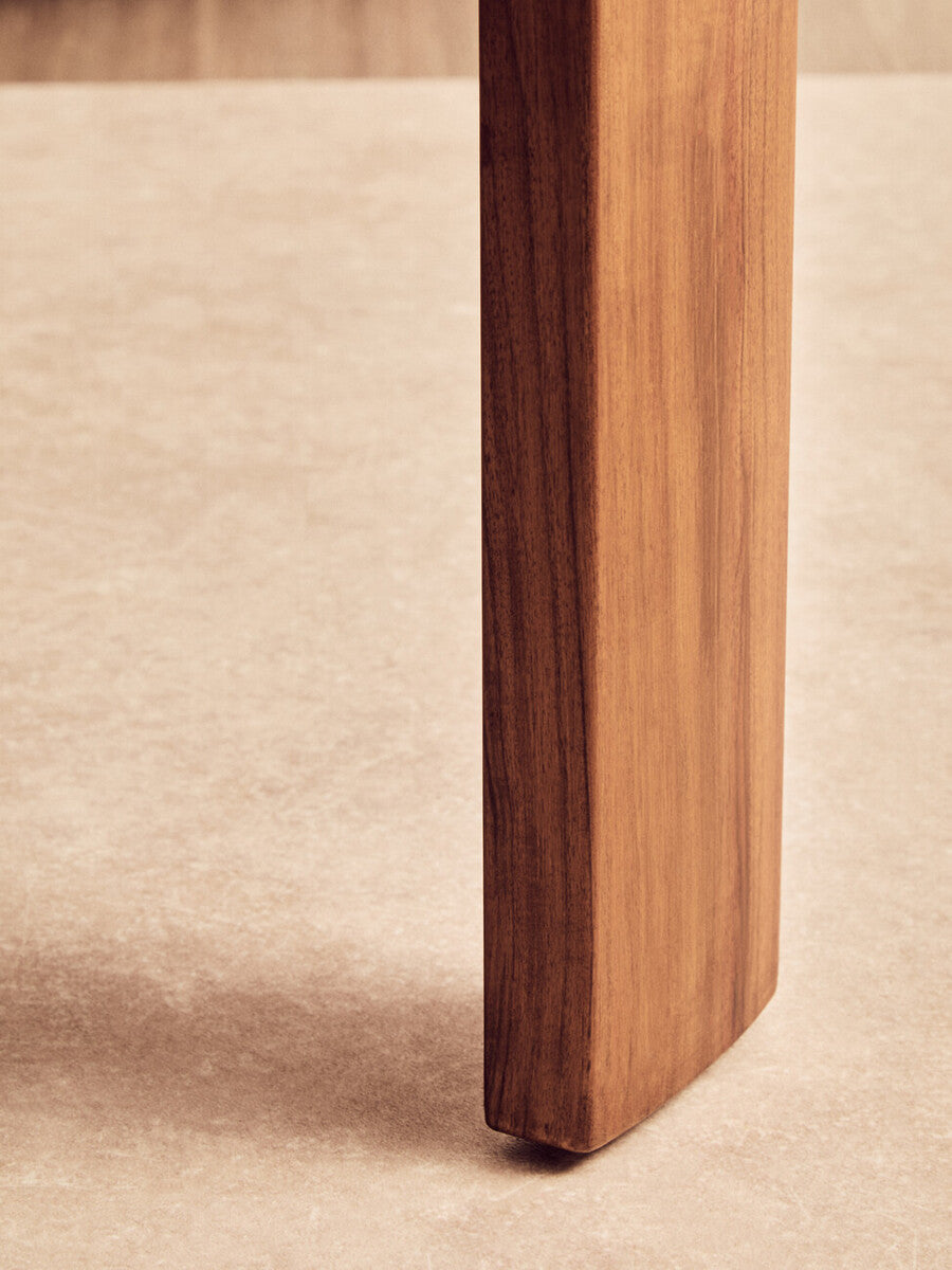 Use a wide tray to protect the surface from drinks and display objects with varying heights for visual interest. If you love natural materials and refined comfort, this table offers the ideal balance of beauty, practicality, and everyday durability.
