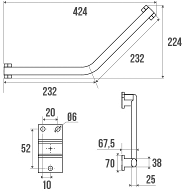Pellet Arsis 135° 200 mm Angled Grab Bar - White Epoxy-coated Aluminium