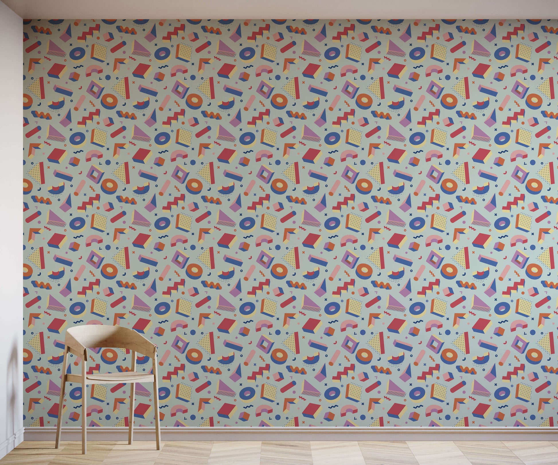 Active between 1980 and 1987, the Memphis Group designed postmodern furniture collections. Their style was to combine asymmetrical shapes with vibrant colours to produce eye-catching interiors. We've drawn inspiration from this with our retro Memphis-style wallpaper, 'Pop'. Available in a range of colours, this design will fit perfectly into any retro-styled space.