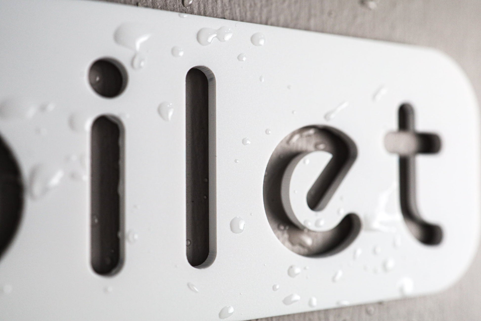 Give your bathroom or washroom a fresh, contemporary finish with this premium white acrylic toilet door sign. The subtle stone texture and clean cut-out lettering create a modern, elegant look that's easy to read and simple to style in any setting.