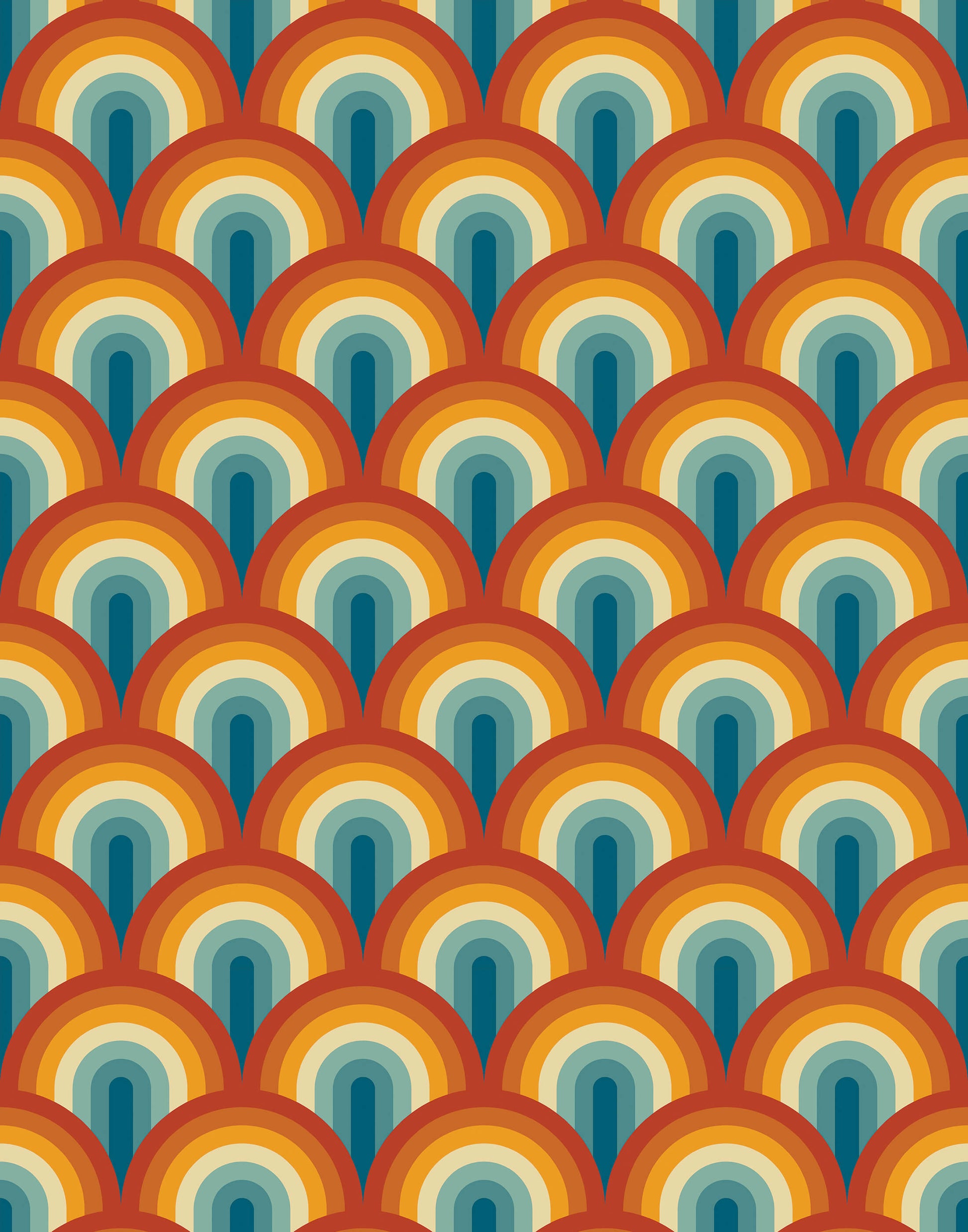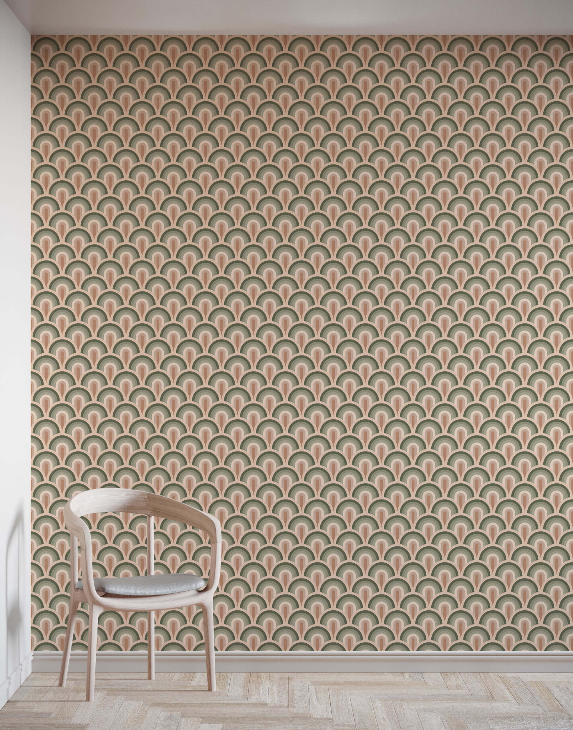 Our retro rainbow wallpaper features classic scallop motifs in a choice of pastel or bold colours. This design will create a stunning feature wall or work well across all walls for maximum impact.