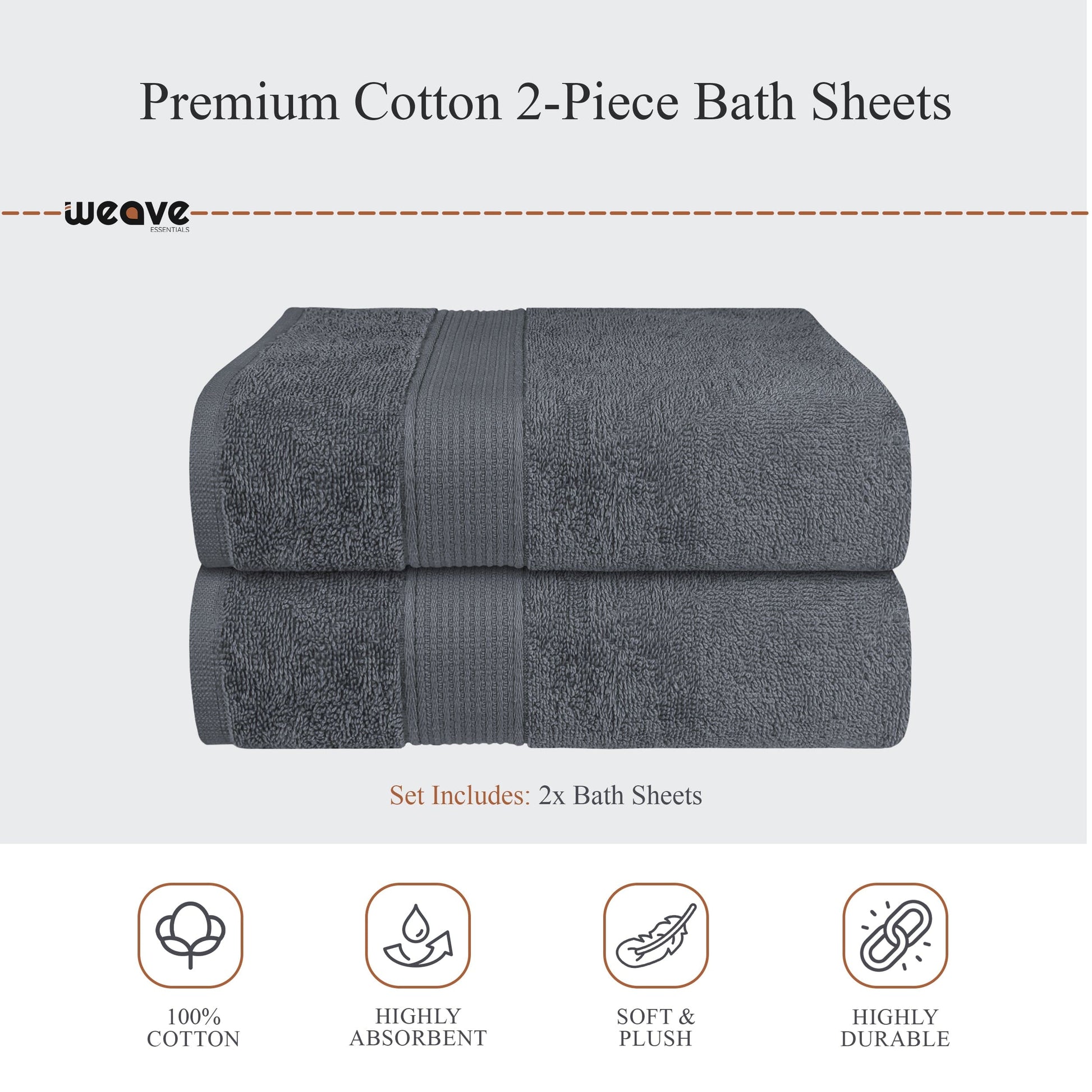 - 2-Pack Bath Sheets: Each measuring 90 x 140 cm – perfect for extra comfort and full-body coverage.