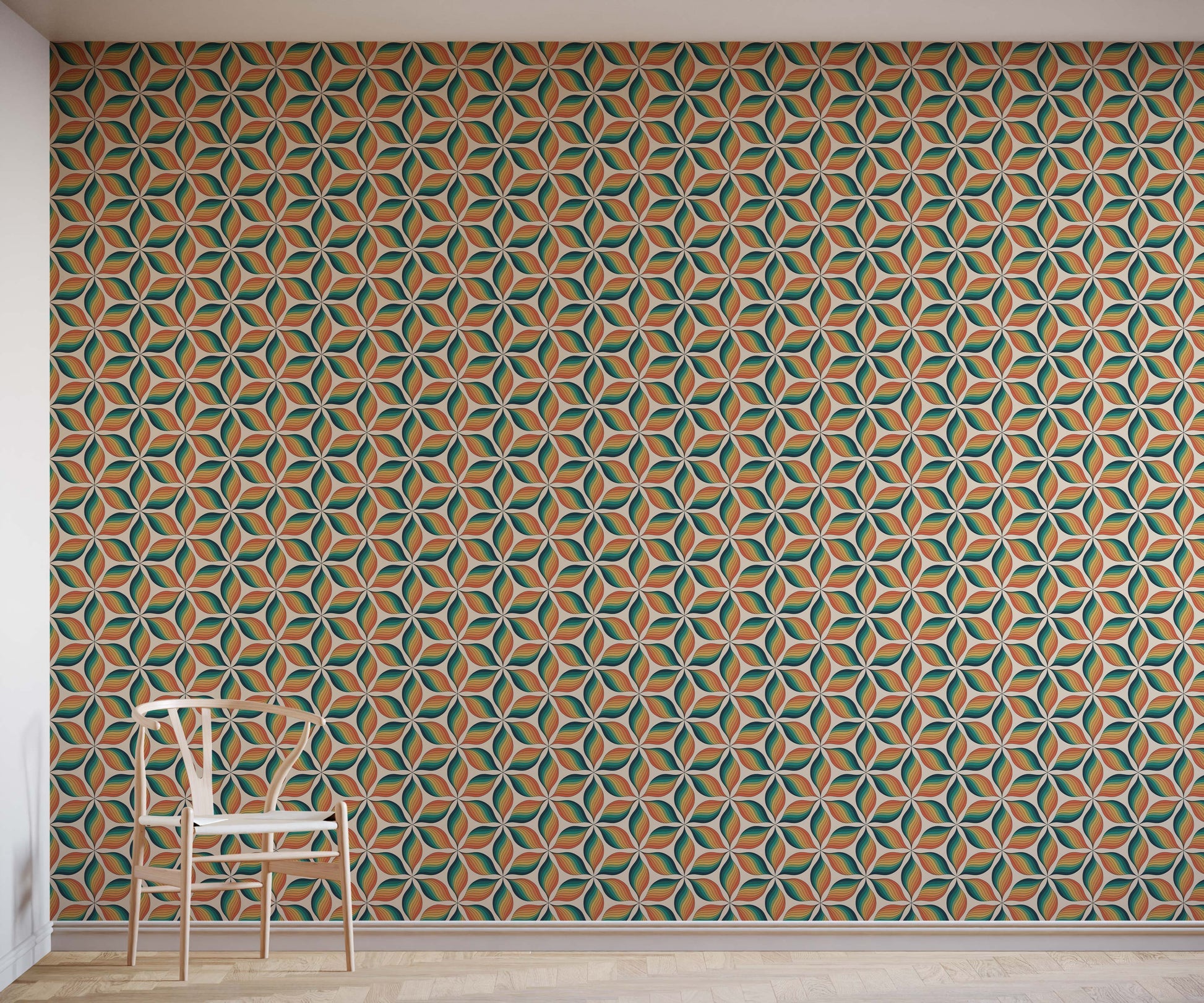 Bursting with colour, this retro design is inspired by the patterns of the late 60s and early 70s. The multicoloured motifs are mesmerising as they cleverly connect to make a cool geometric pattern.