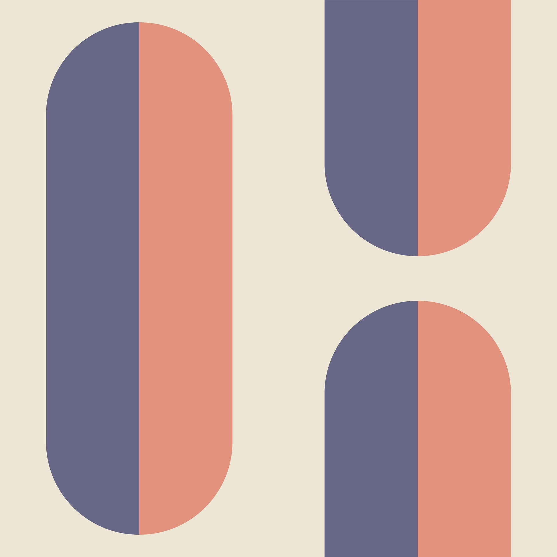 This geometric pill shape wallpaper is great for making a statement. The large pill-like shapes make this a very big pattern that is unmissable. With an alternating composition, the design is visually interesting, bold and colourful. It's great for bright and modern interiors.