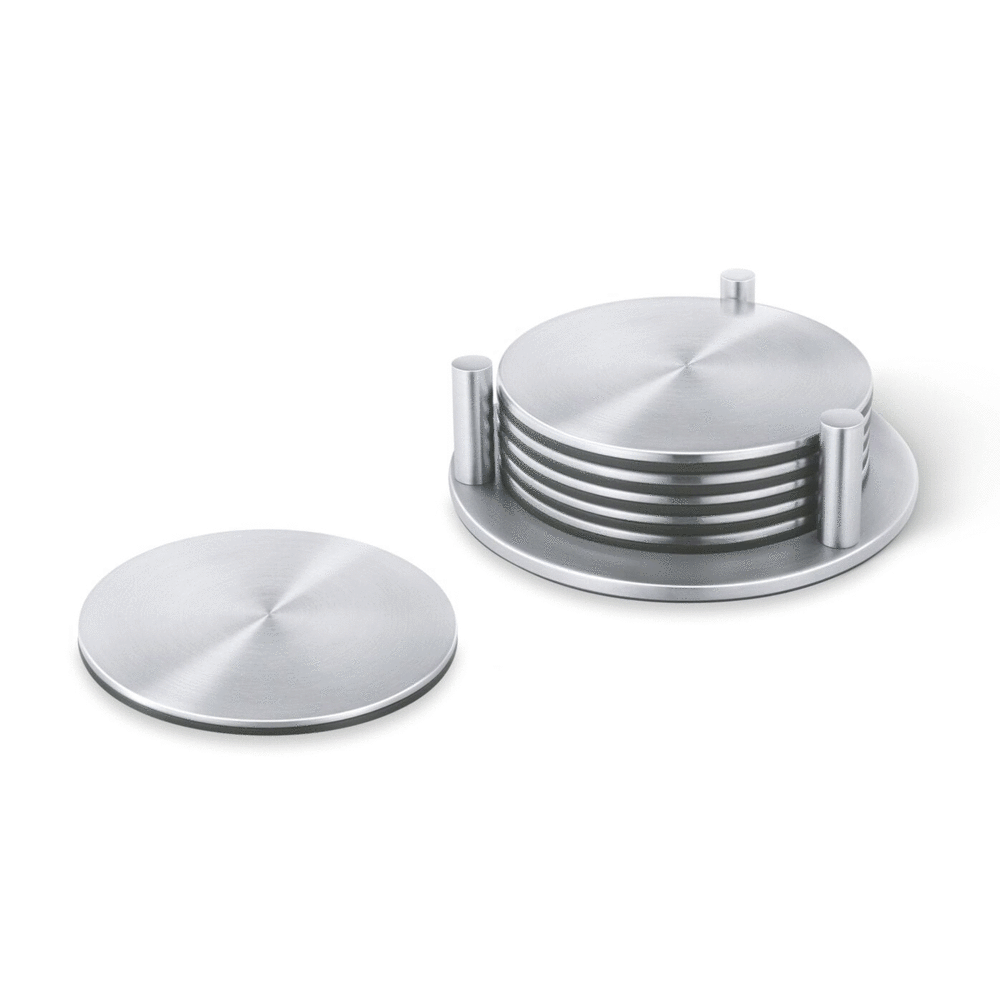Zack Regio Brushed Stainless Steel Coaster Set with Stand - 6 Piece