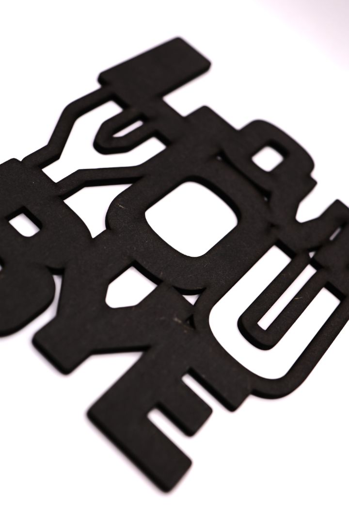 Add personality and a playful finishing touch to your home with this stylish "Love You Bye" decorative wall sign. Crafted from sleek black MDF, it makes a bold yet simple statement on any wall or door, adding a touch of everyday charm to hallways, bedrooms, and living spaces. Easy to fit and effortless to style, it's an ideal choice for creating a welcoming, characterful feel.