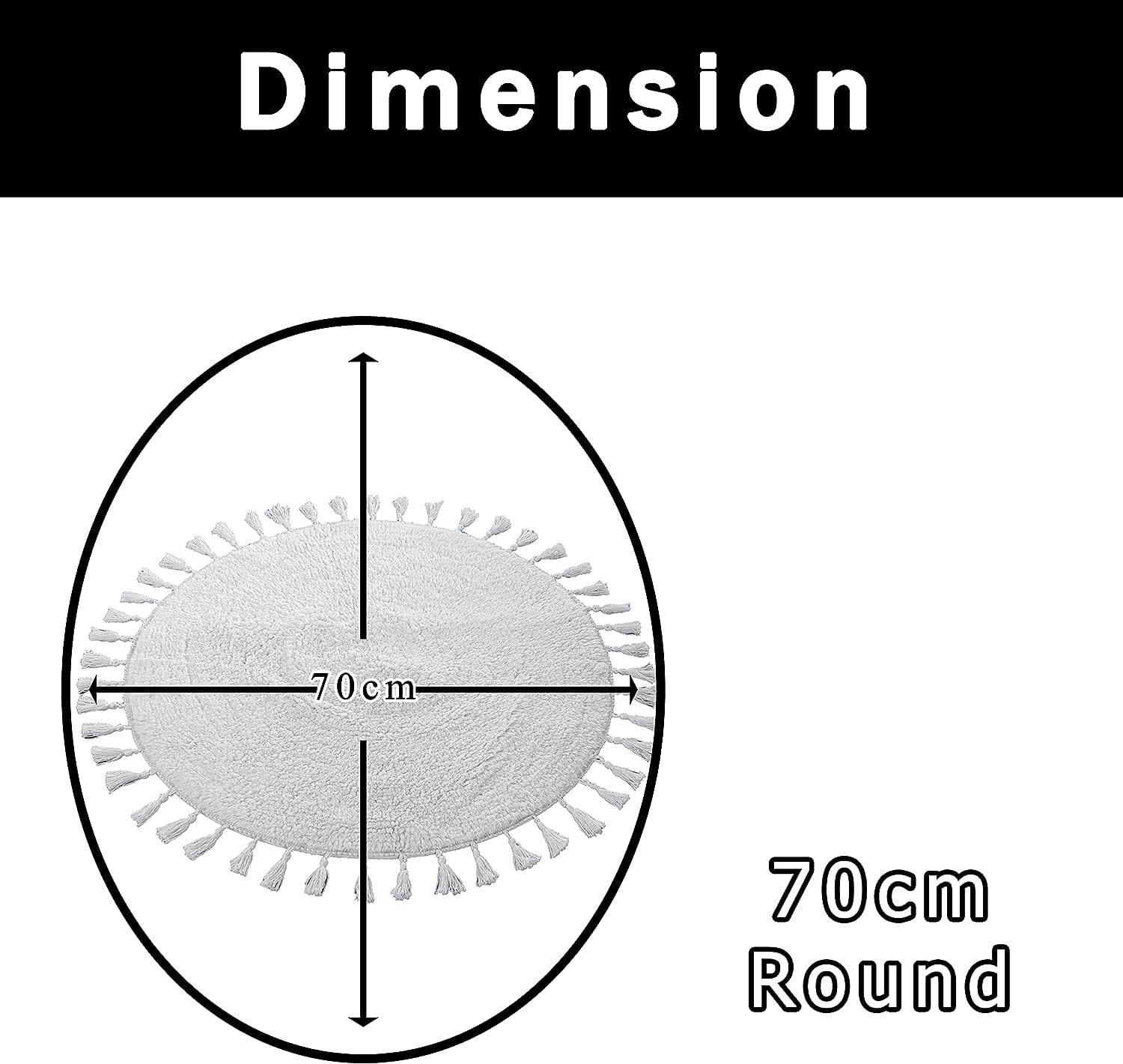 The OLIVIA ROCCO Non-Slip Round Tasselled Bath Mat is available in a convenient size of 70cm round, providing ample coverage for your bathroom floor.