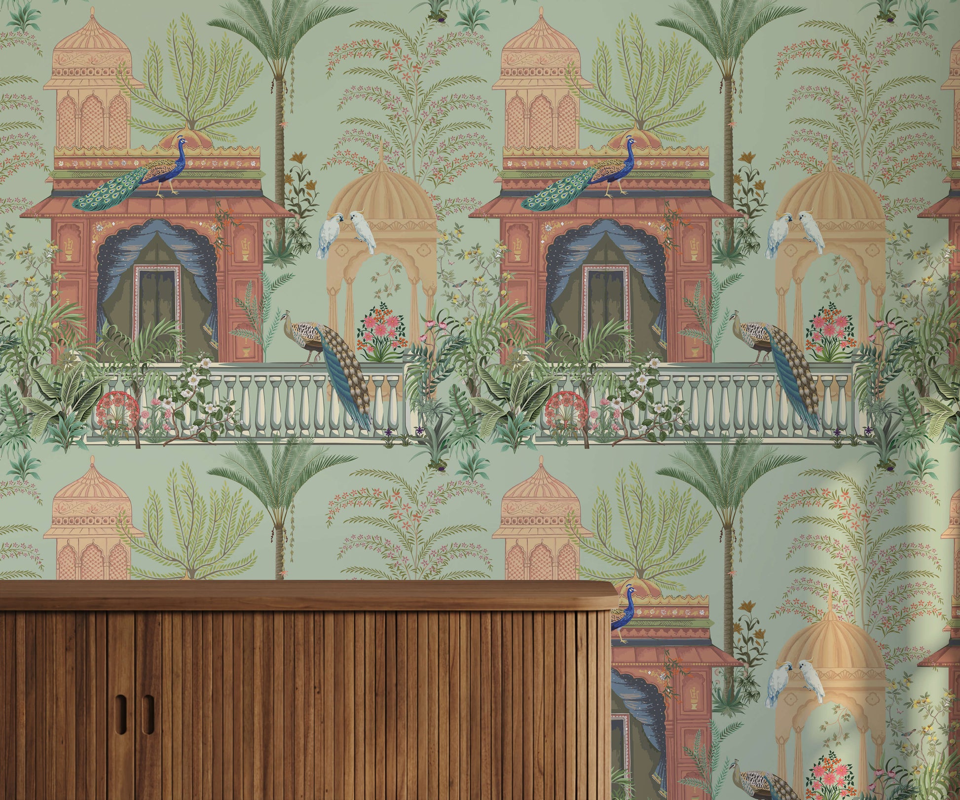 If you're looking for a wallpaper with an exotic theme, our Persian peacock wallpaper could be the perfect choice. Featuring bold painted peacocks amongst Persian architecture and tropical foliage, the design is an excellent choice for adding drama to your space. The design comes in a variety of colours, all of which deliver the wow-factor.