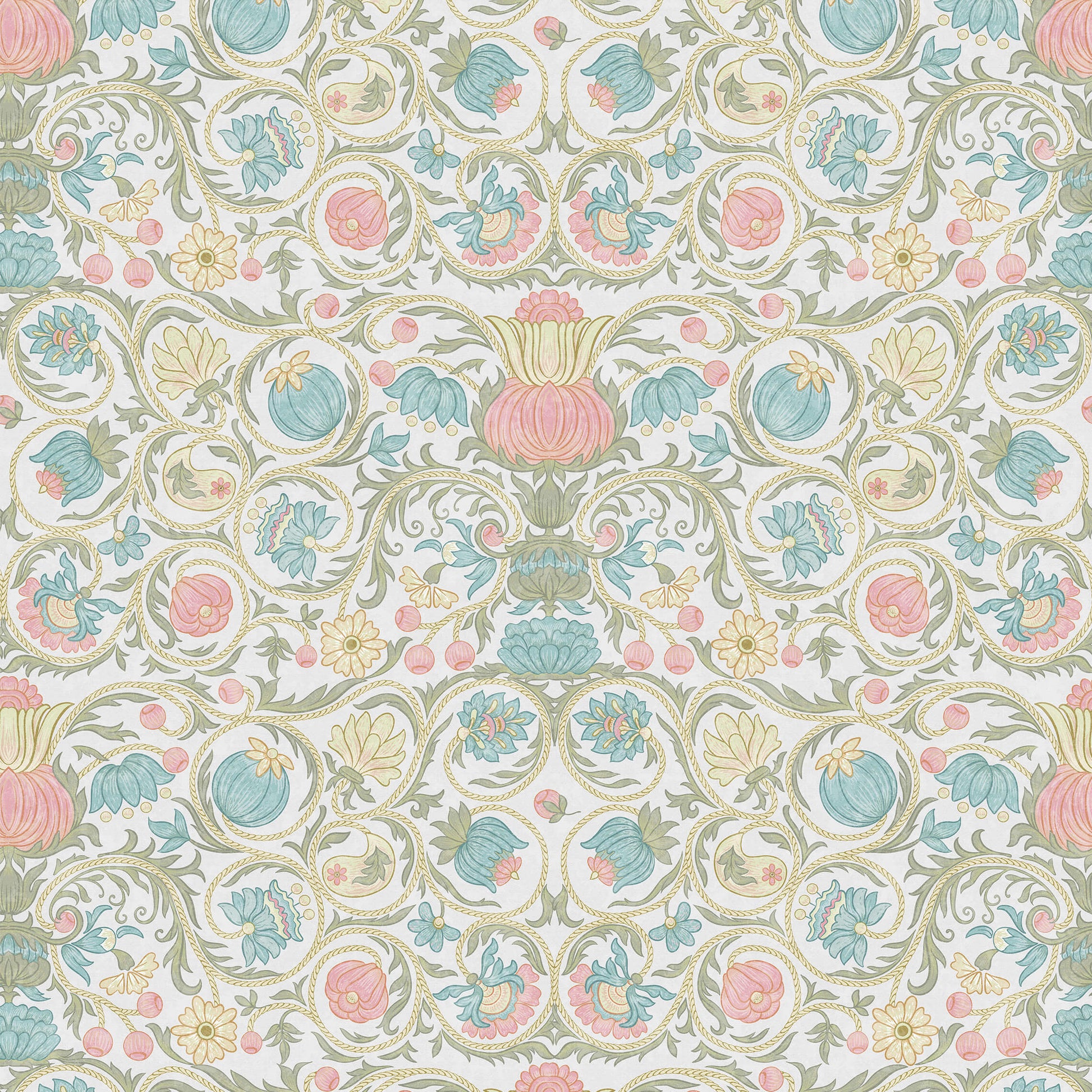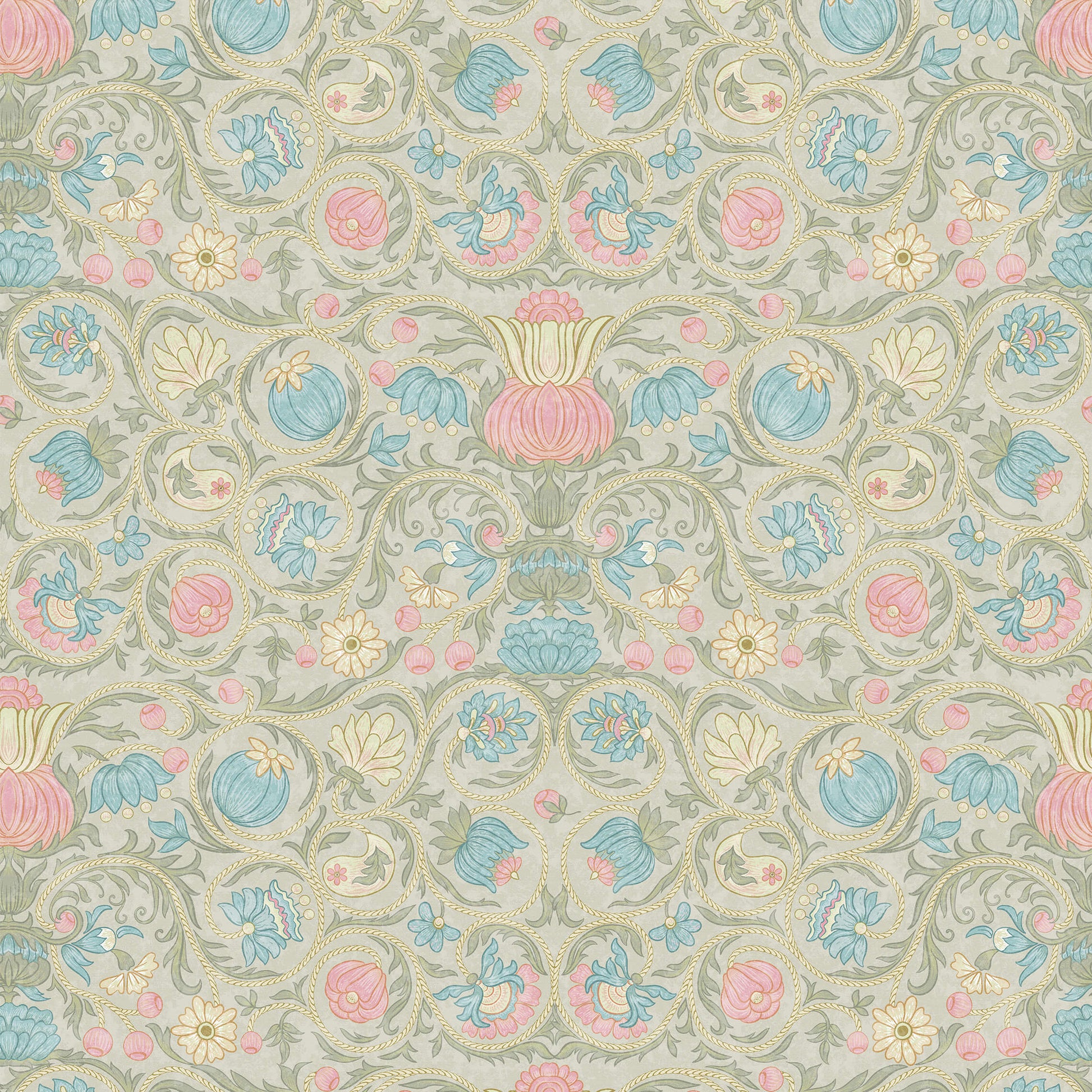 Heritage floral wallpaper offers a delicate nod to traditional elegance with its intricate floral motifs and timeless charm. Swirling vines gracefully weave through the design, creating a sense of fluidity and movement, while the variety of flower blossoms is in perfect harmony. The detailed blooms are presented in soft, muted tones, giving the pattern a refined, vintage appeal, reminiscent of classical interiors. This wallpaper breathes an air of sophistication and beauty into any space, making it an ideal choice for those looking to bring a touch of historic romance and decorative artistry to their walls.