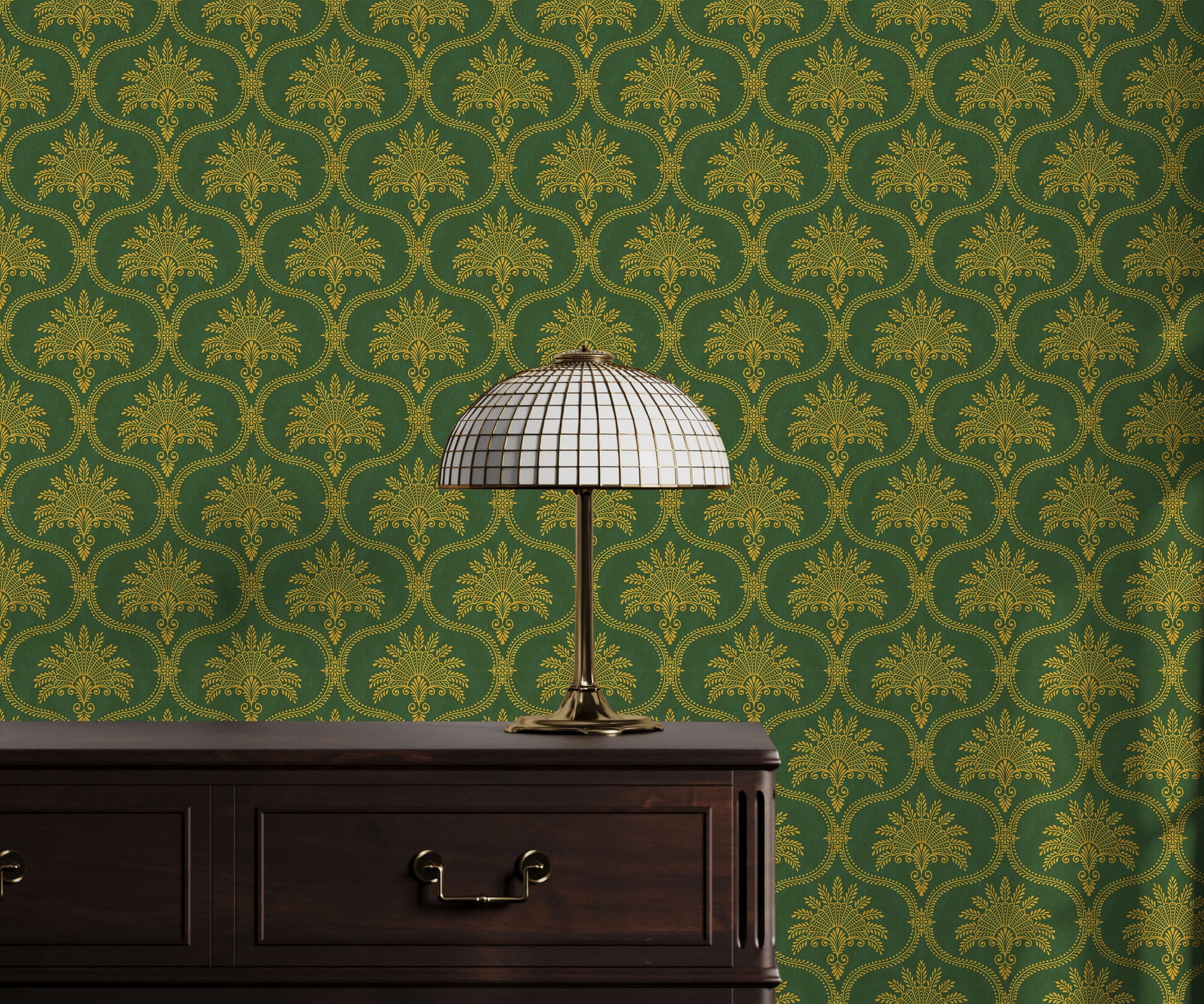 - Textile-inspired texture – Highly detailed motifs mimic the look of woven brocade for added depth and gravitas