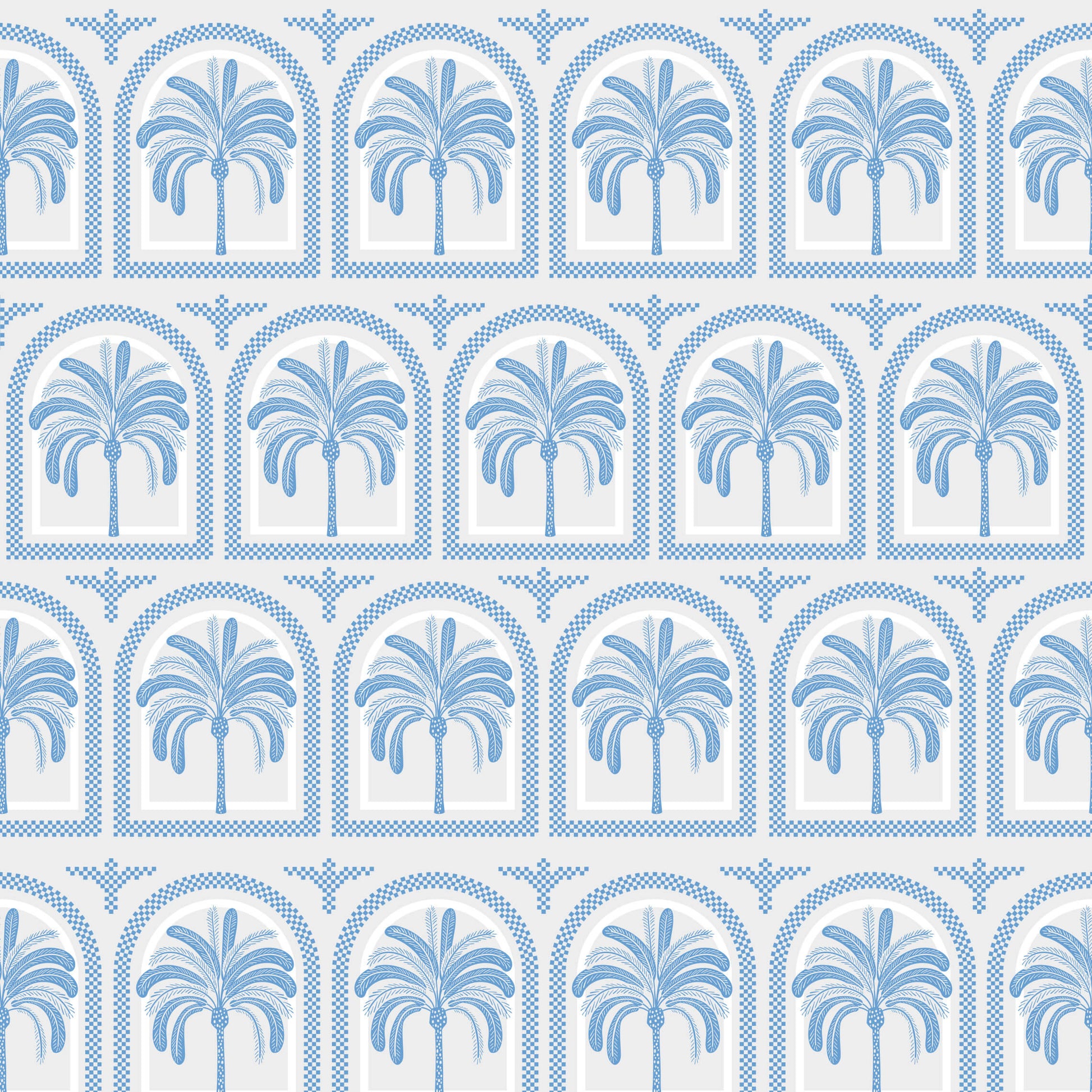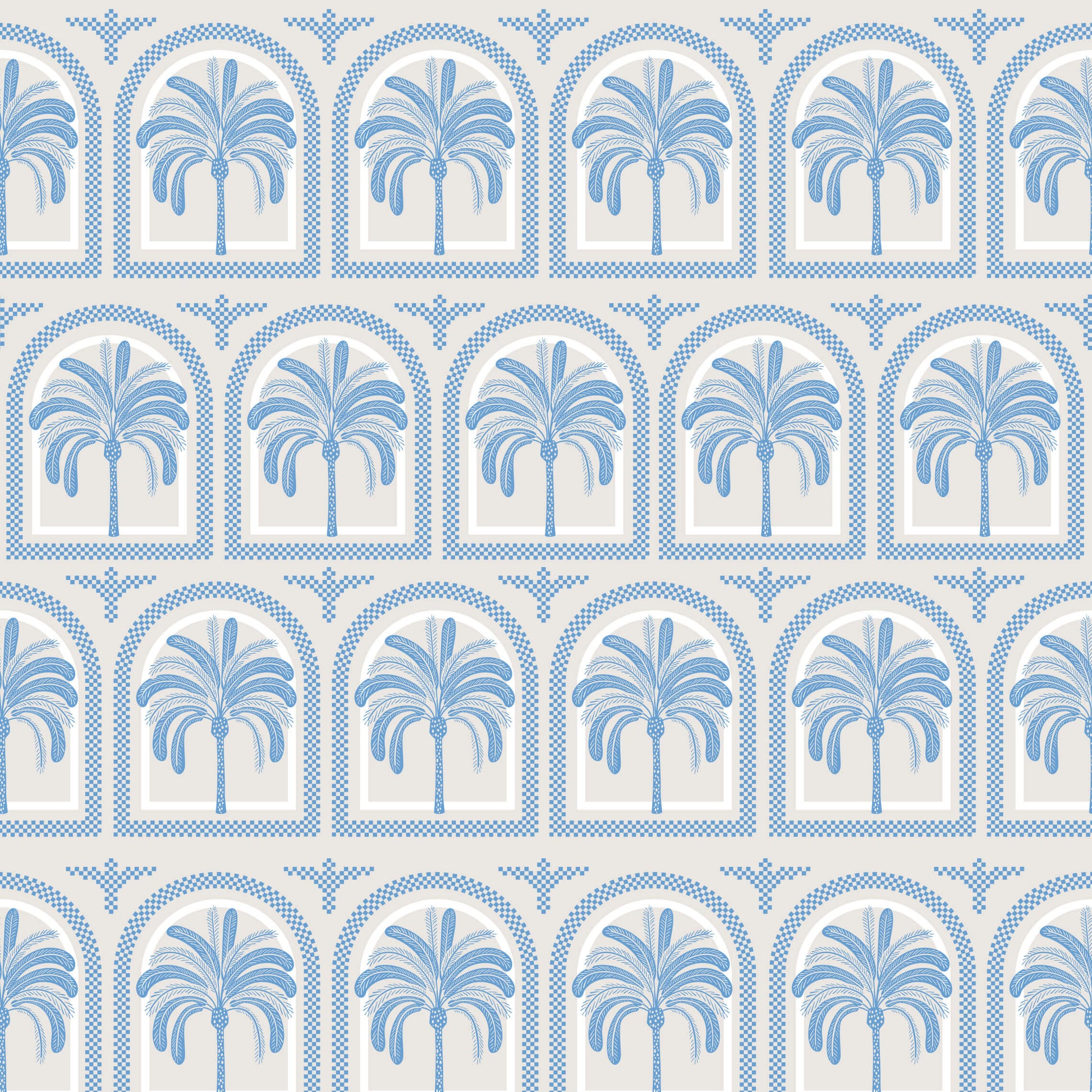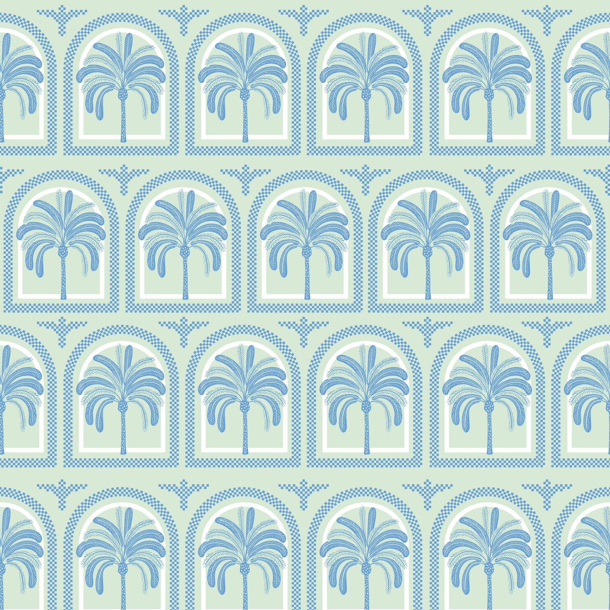 This palm tree pattern wallpaper evokes classic elegance while transporting you to a serene tropical oasis. Each tree is framed within a delicate arched motif, offering a structured yet calming rhythm to the design. The palm trees, with their distinctive sweeping fronds, create a sense of movement that contrasts beautifully with the geometric grid that surrounds them. The repeated arches introduce a hint of architectural sophistication, nodding to traditional design influences. This wallpaper is perfect for those looking to bring an exotic yet refined atmosphere to their space. The repeating pattern of palms conveys a sense of order and tranquillity, ideal for creating a calm, inviting backdrop in living rooms, hallways, or even a tranquil bedroom retreat. Whether used across an entire room or as a feature wall, the palm tree pattern wallpaper adds a touch of sophistication while evoking the easy-going charm of tropical landscapes. It offers a timeless balance between the structured and the organic, bringing together classical design elements with a relaxed, nature-inspired feel.