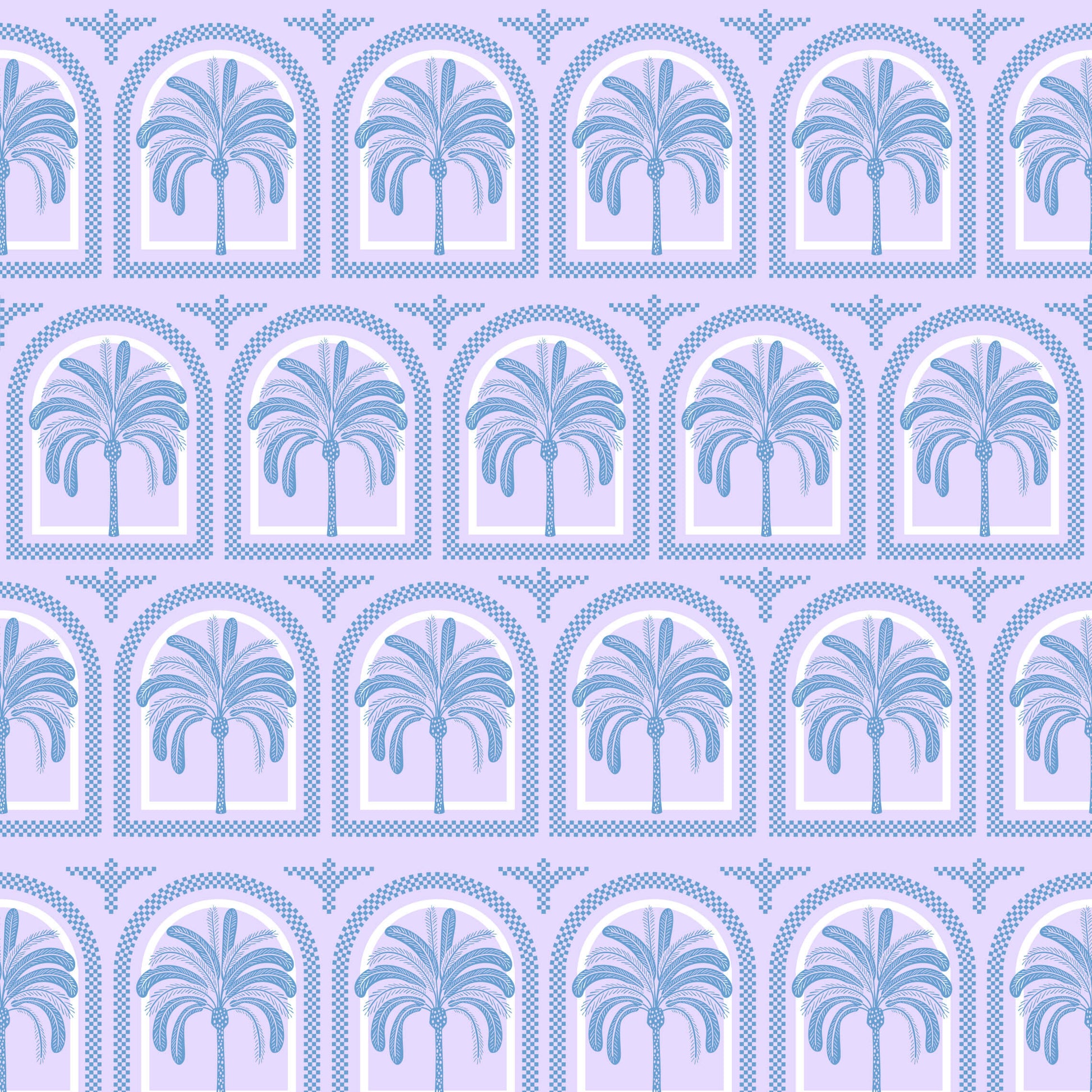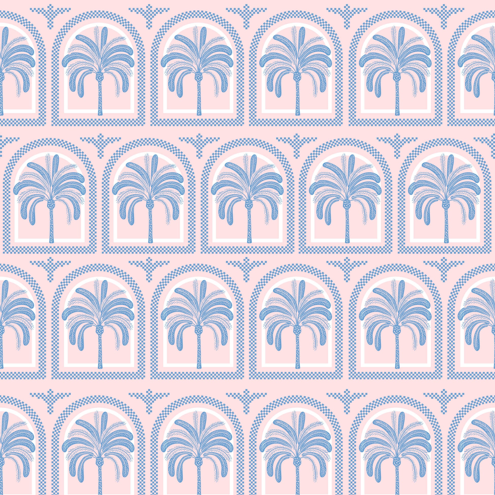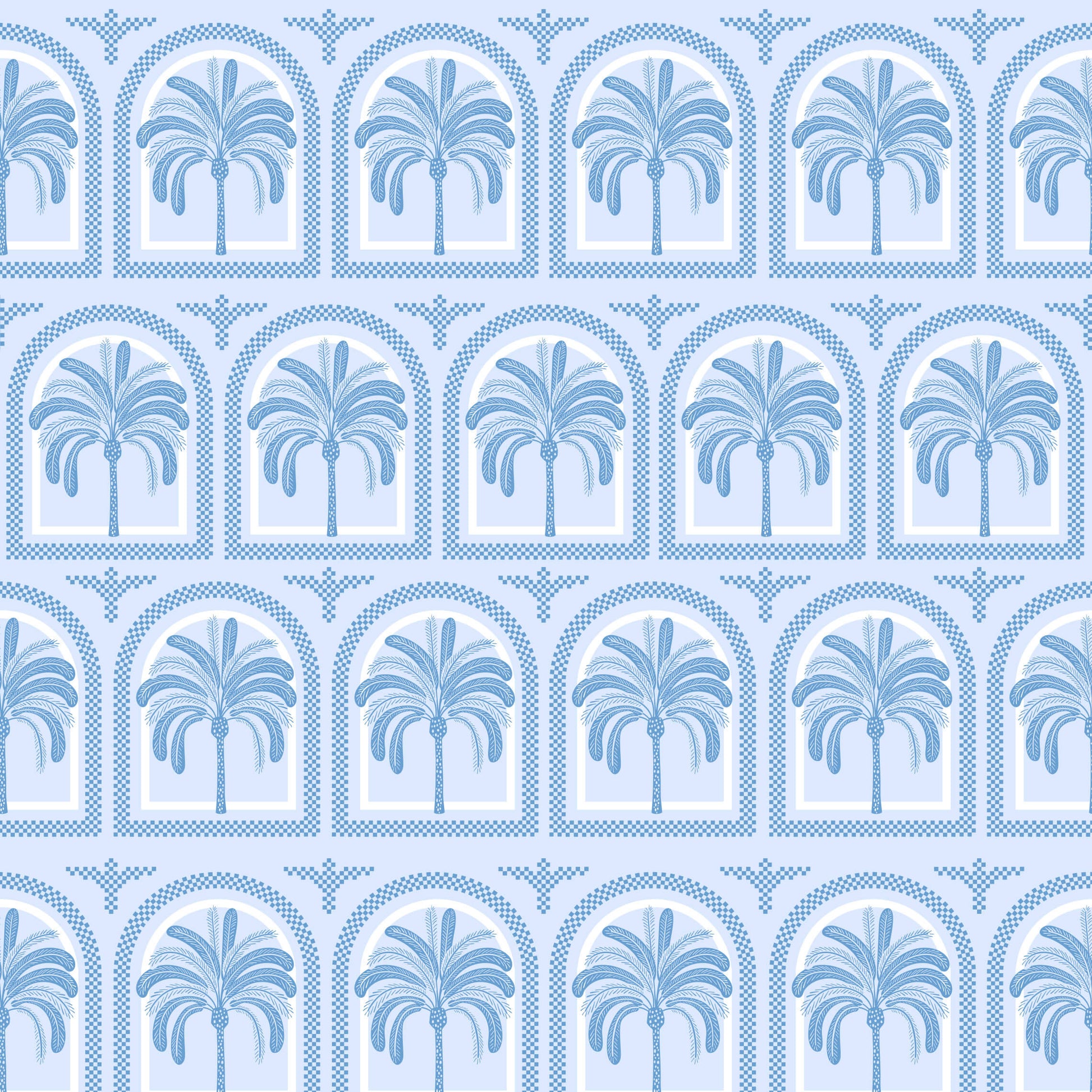 This palm tree pattern wallpaper evokes classic elegance while transporting you to a serene tropical oasis. Each tree is framed within a delicate arched motif, offering a structured yet calming rhythm to the design. The palm trees, with their distinctive sweeping fronds, create a sense of movement that contrasts beautifully with the geometric grid that surrounds them. The repeated arches introduce a hint of architectural sophistication, nodding to traditional design influences. This wallpaper is perfect for those looking to bring an exotic yet refined atmosphere to their space. The repeating pattern of palms conveys a sense of order and tranquillity, ideal for creating a calm, inviting backdrop in living rooms, hallways, or even a tranquil bedroom retreat. Whether used across an entire room or as a feature wall, the palm tree pattern wallpaper adds a touch of sophistication while evoking the easy-going charm of tropical landscapes. It offers a timeless balance between the structured and the organic, bringing together classical design elements with a relaxed, nature-inspired feel.
