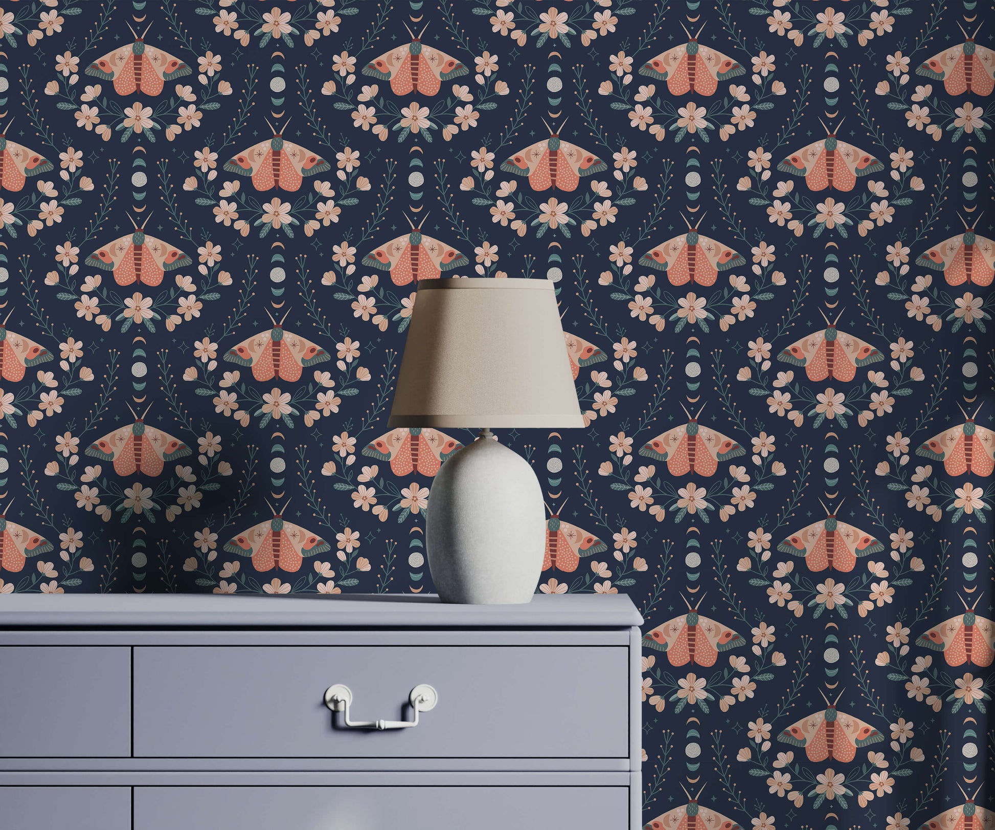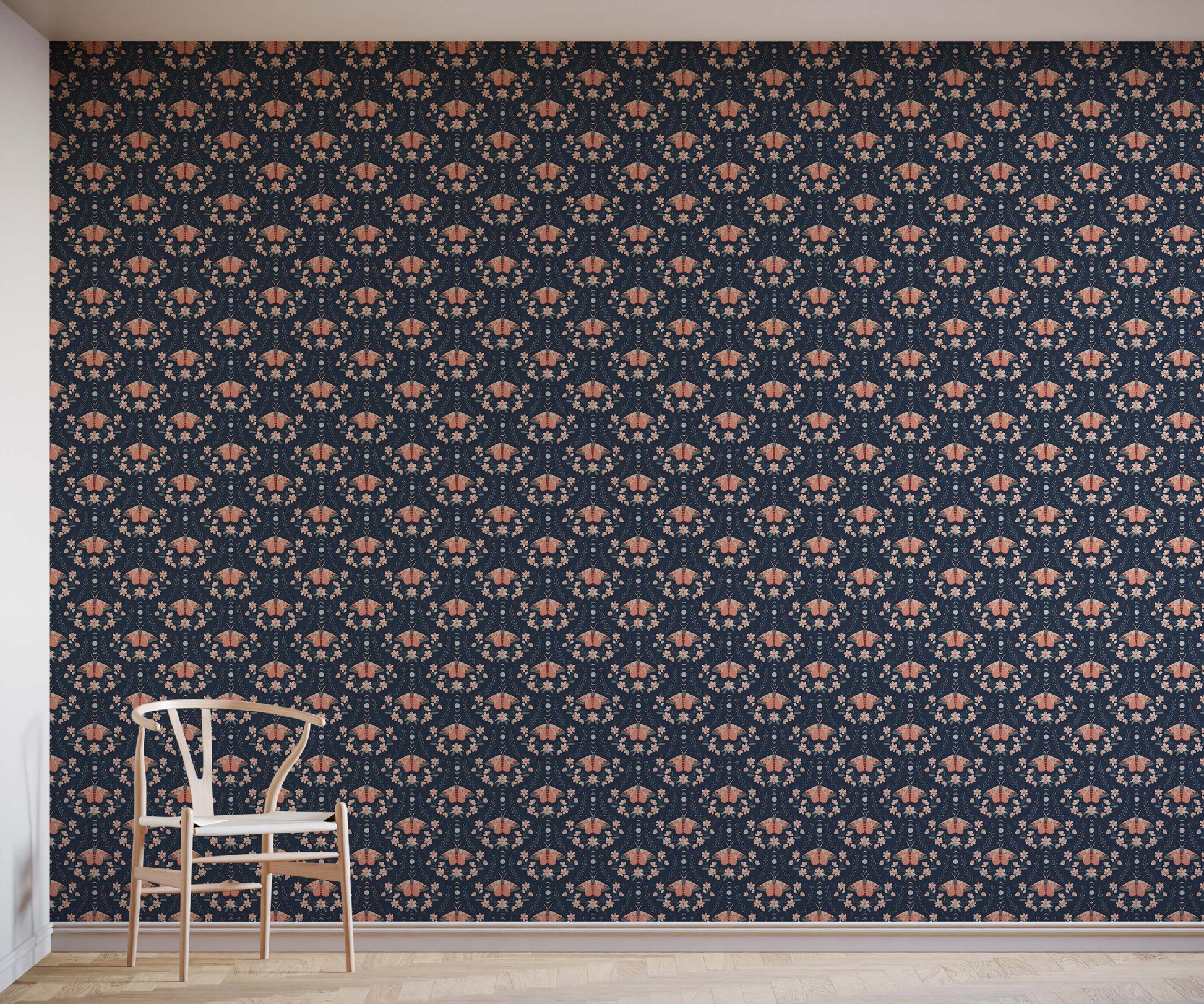 This cute flower-and-butterfly wallpaper is designed with a good balance of modern and vintage aesthetics. The butterflies and flowers have been naively illustrated in an adorable style. It's a colourful design, available in blue, pink, purple, black and more.
