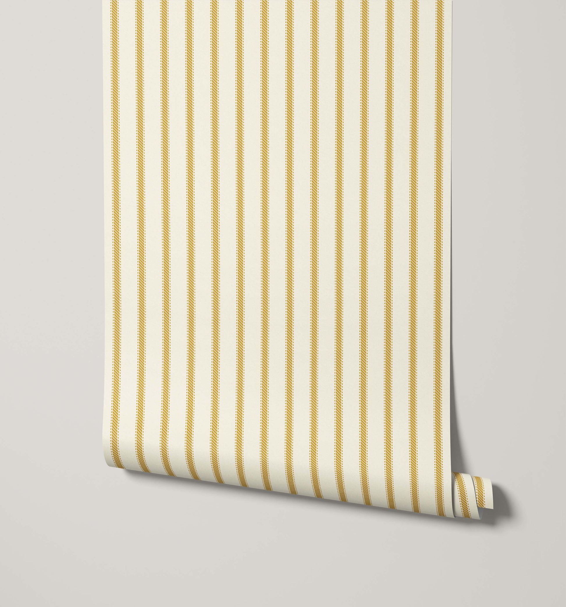 Bring an easy sense of warmth and familiarity to your walls with this Simple Ticking Stripe Wallpaper. Inspired by traditional woven fabrics, it offers a look that feels both classic and refreshingly light. Finely drawn vertical stripes are evenly spaced across the surface, introducing gentle structure and height without overwhelming the room. The result is a calm, inviting backdrop that suits everyday spaces perfectly.