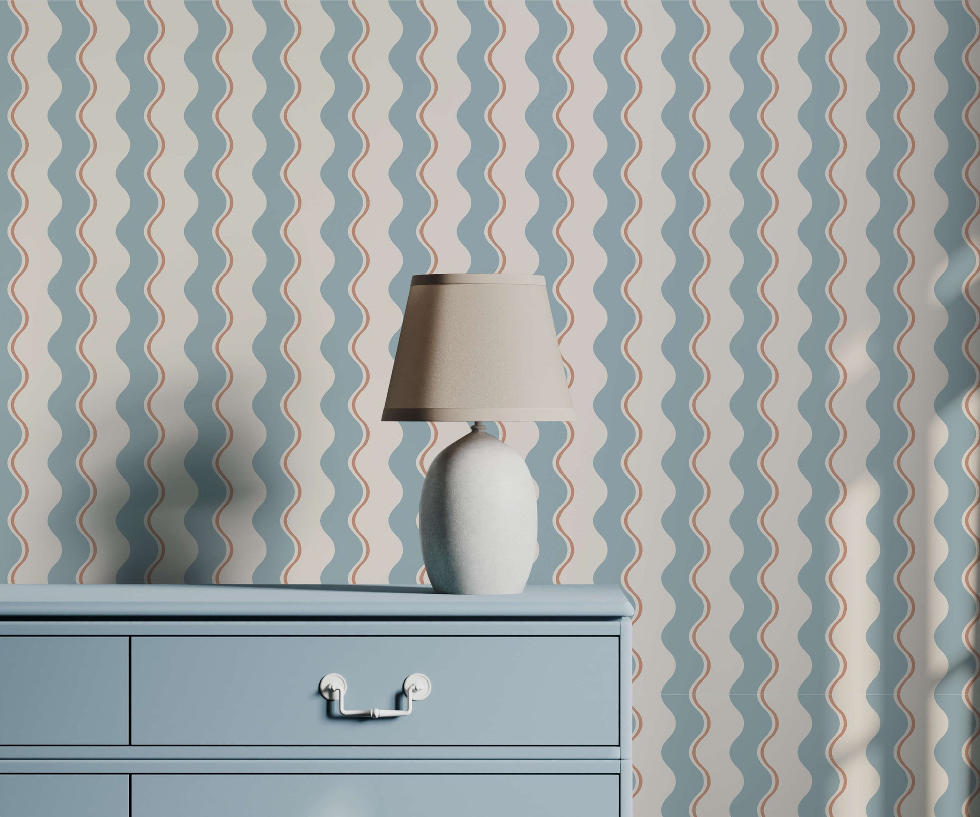 If you're aiming for a space that feels contemporary, uplifting and full of gentle movement, this wavy stripe design offers a charming backdrop you'll enjoy every day.
