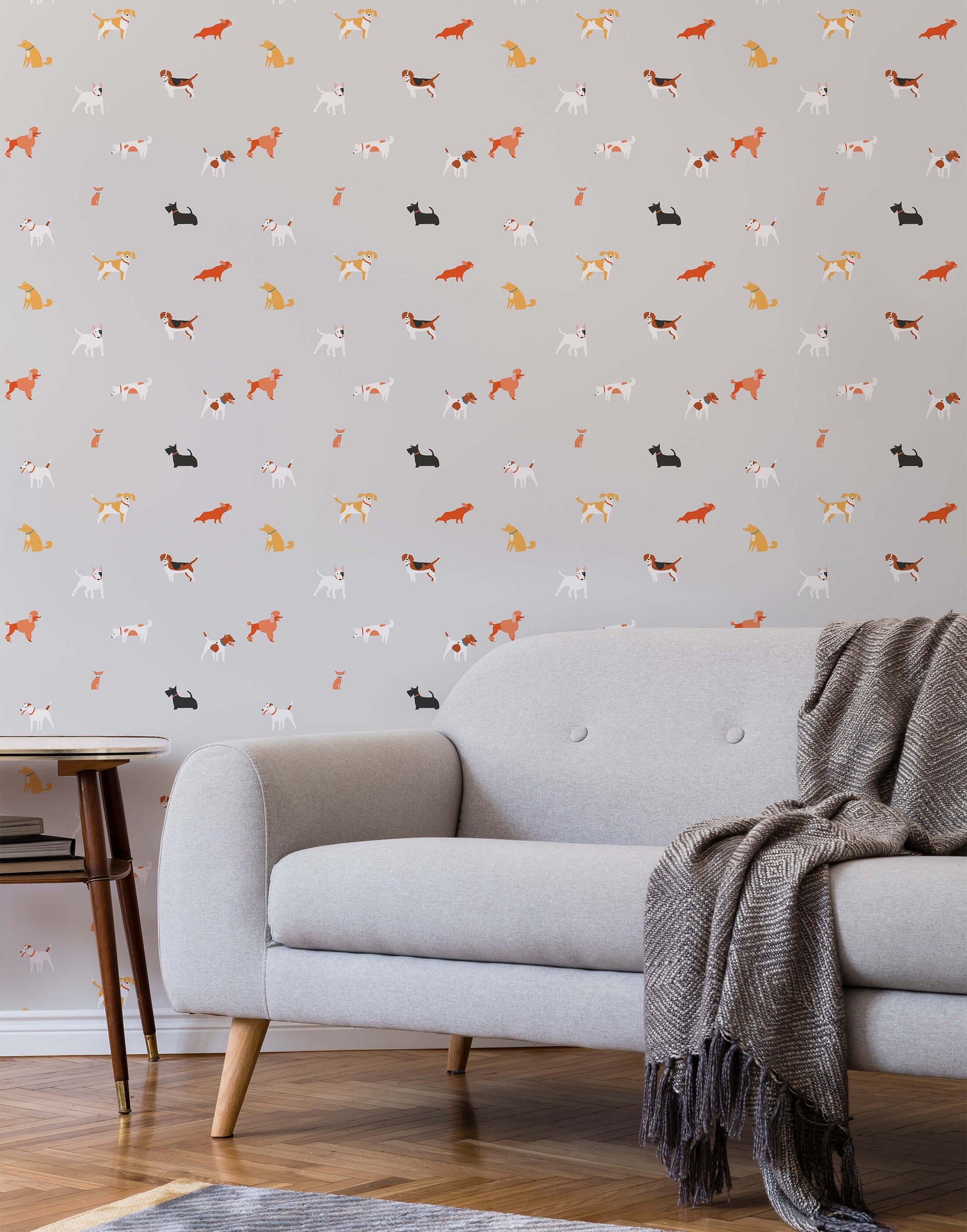 This playful dog wallpaper features a variety of breeds designed in a modern graphic style atop a plain background. It's a great choice if you're looking to celebrate your love of man's best friend in a quirky and unique way. The pattern features beagles, poodles, chihauahas and more.