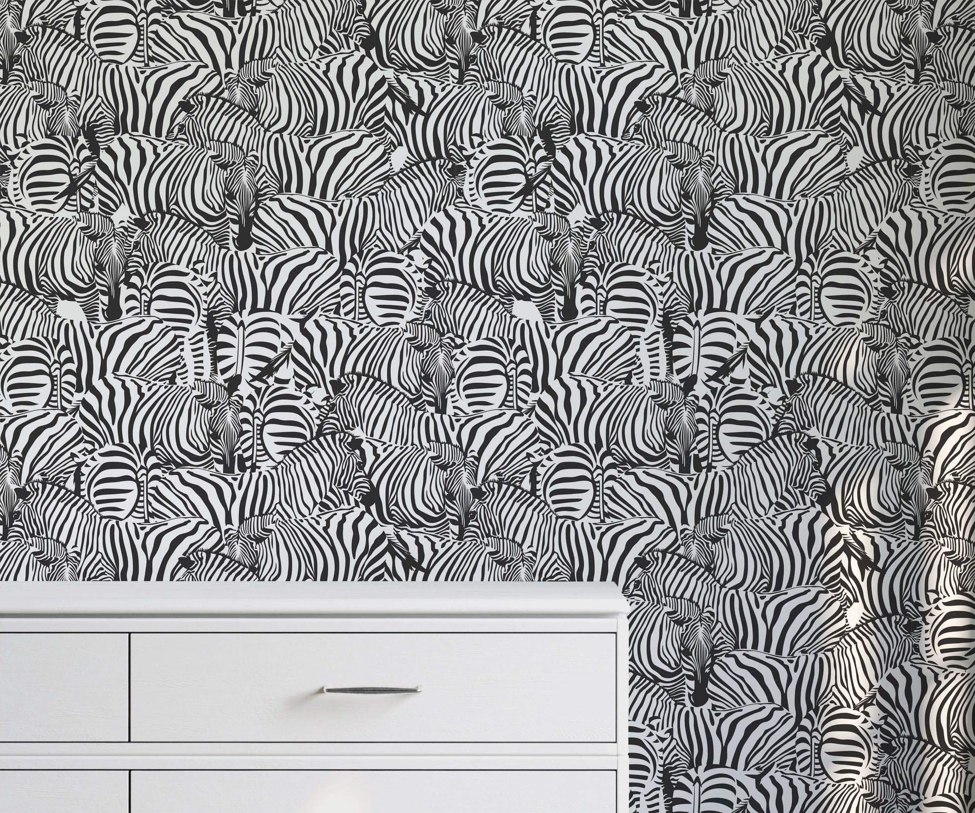 Step into the enchanting world of our monochrome zebra Wallpaper – a fusion of sophistication and vibrancy. This wallpaper showcases an intricate, busy pattern cleverly incorporating illustrated zebras. The black and white aesthetic exudes timeless elegance with a maximalist impact, but there are a variety of colour options for those looking for something a little brighter. Perfect for those who crave a striking and dynamic look, this wallpaper transforms any space into a great talking point.