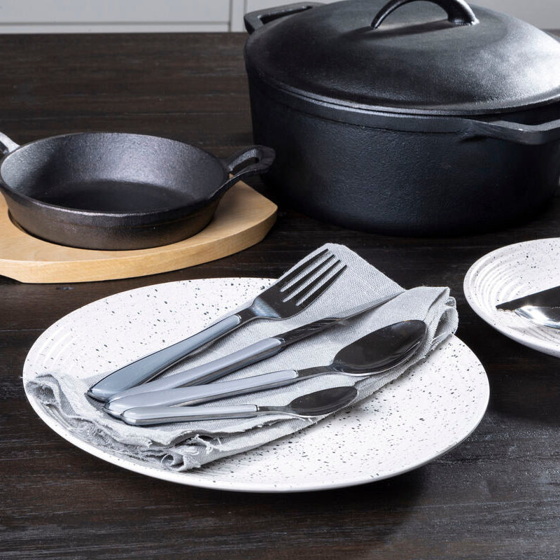 Enliven mealtimes with the Zuma 24 Piece Multicoloured Cutlery Set from Proleno. Built from non-corrosive stainless steel, this silver cutlery with assorted handle colours introduces warmth and playfulness to the dining table while staying reassuringly practical. Ergonomic curves are designed to feel comfortable from breakfast through to dinner.
